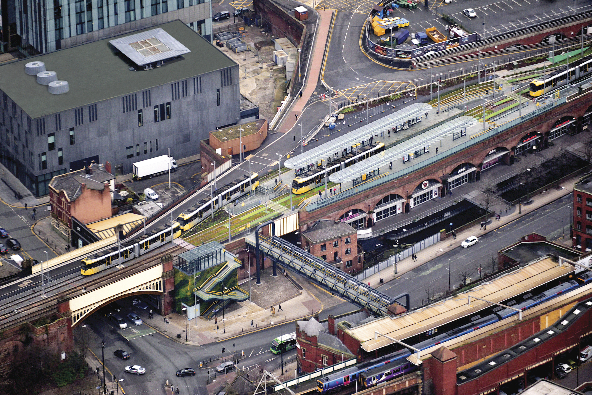 The project brief required improved access to the Deansgate-Castlefield tram stop and the introduction of a new track and platform arrangement to improve passenger capacity.