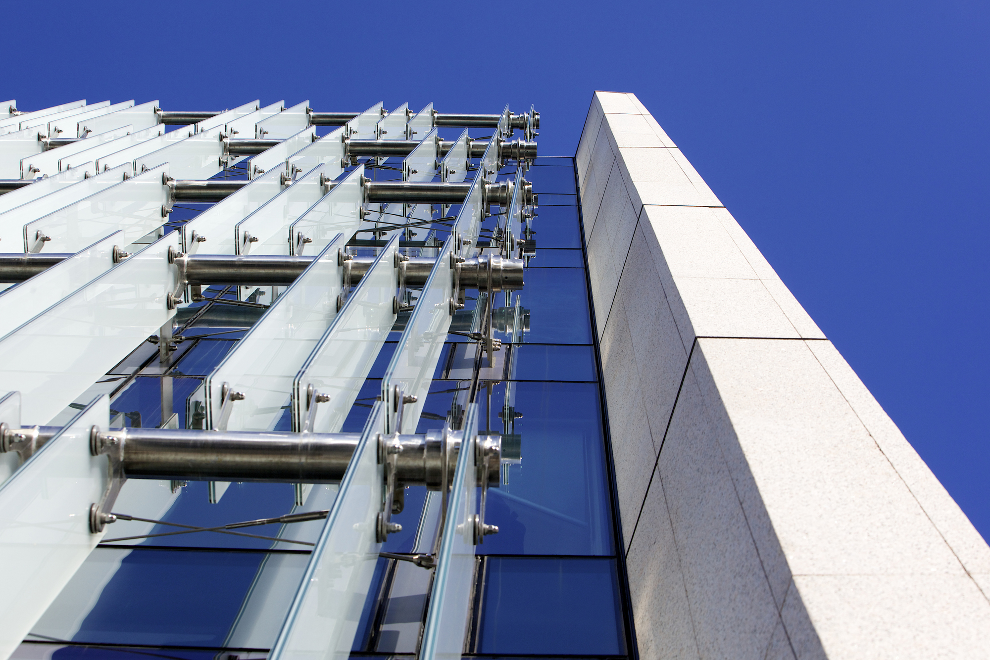 The building form is derived from a number of parameters linked to both the perception of the building from the outside and the inside. The visual impact of the building’s height is considerably less because the top floor is set back. To optimise visual links from inside with the waterfront, the south elevation is conceived as a ‘window’ on the esplanade, distinguished by full-height translucent glass blades that provide solar shading and frame views of the coast. The support system for the blades is a bespoke crafted solution that suits the particular demands of this building and contributes to a striking contemporary image.