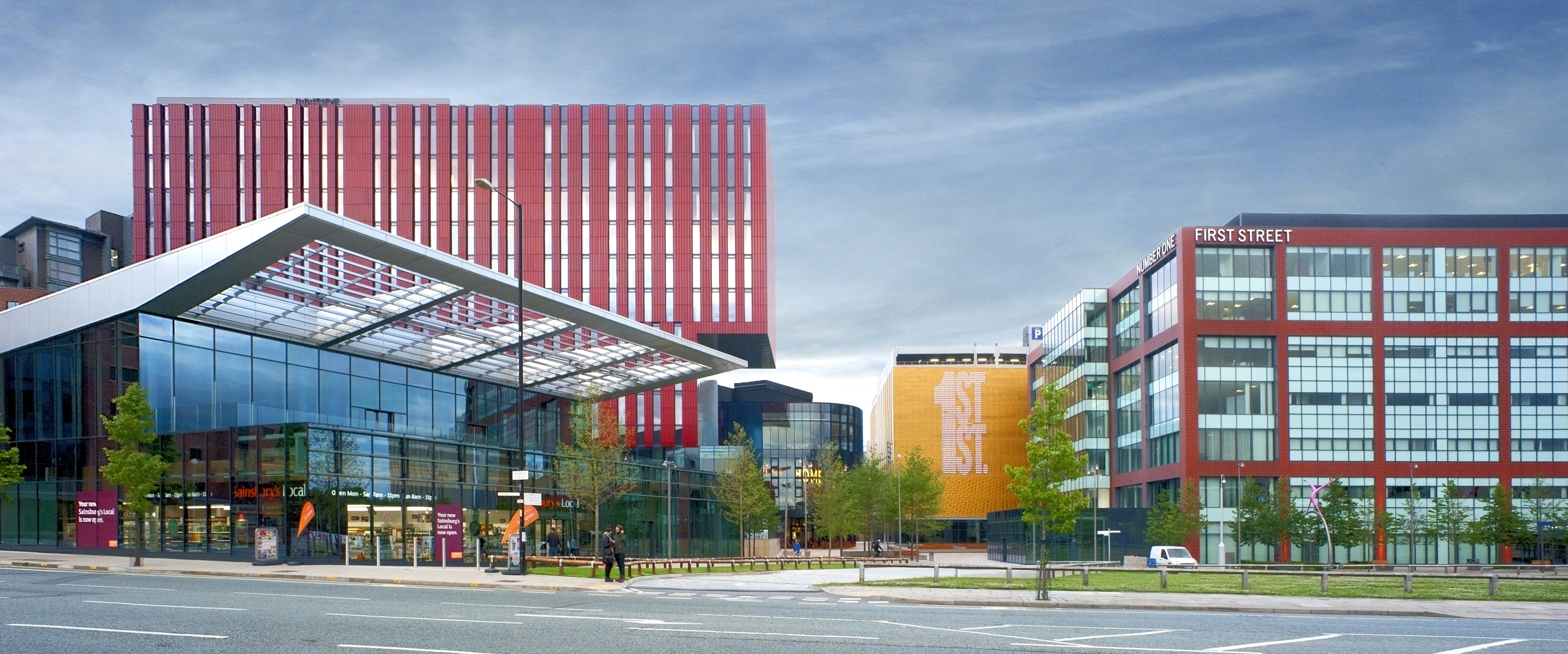 The First Street North site forms an important gateway to the city. Our designs for these four plots took inspiration from the ambition to create a new cultural quarter within the city, so that they support and enhance the unique character of this new place and enhance the setting of the new cultural facility, now built as HOME.