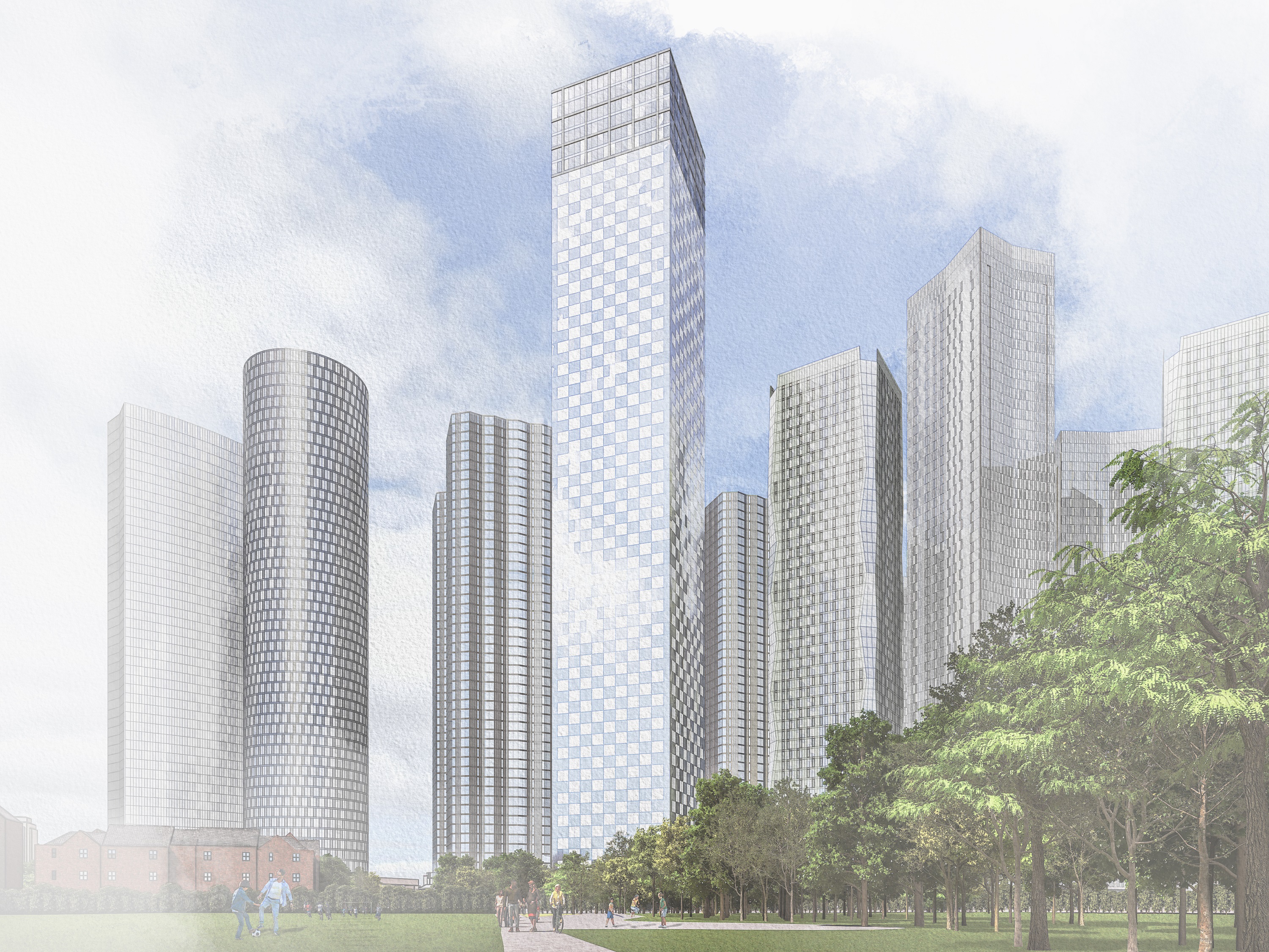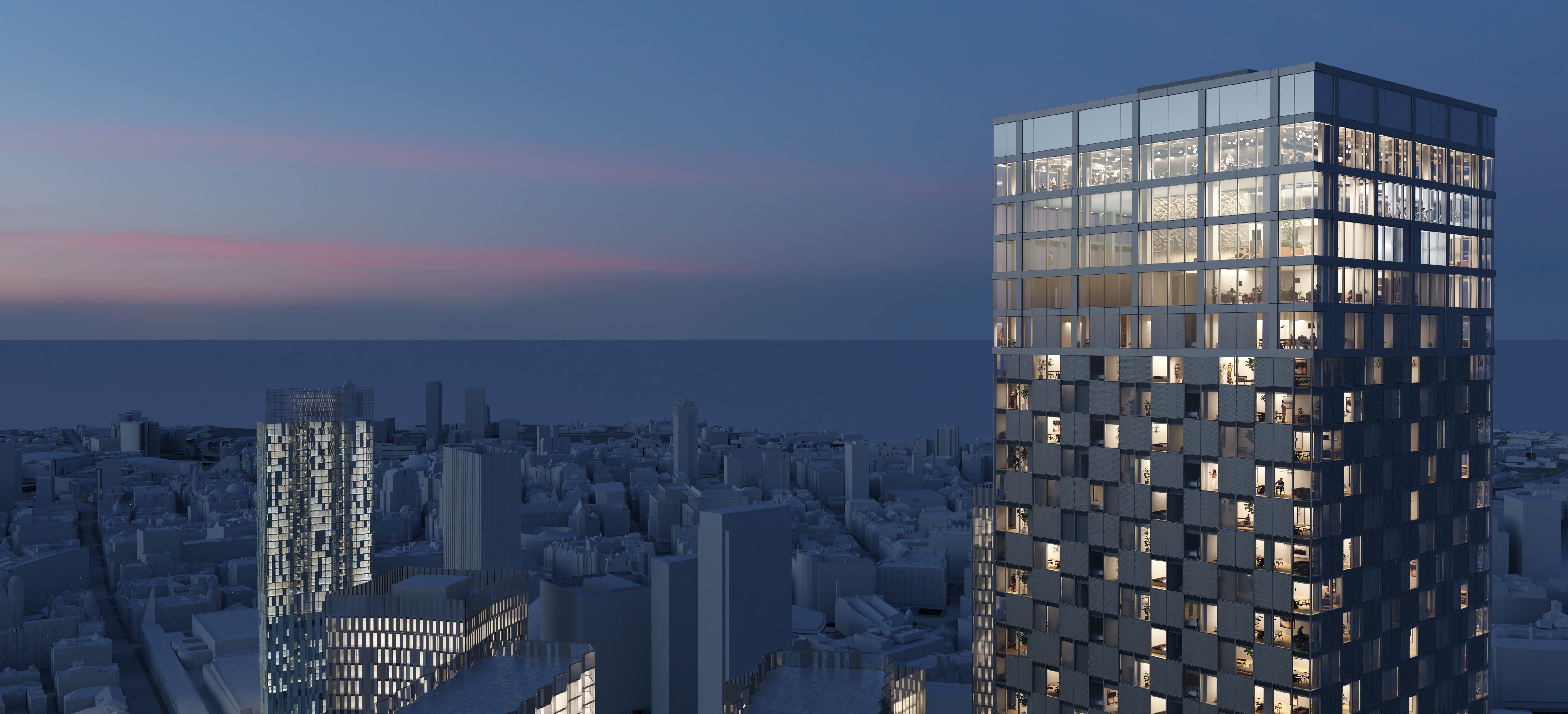 This beautiful and elegant 71-storey tower will be a new city landmark, positively contributing to the skyline of Manchester, and as the tallest tower within the cluster, marking the completion of the New Jackson neighbourhood. The tower sits above a 2-storey landscaped podium and a new 3-storey office building is proposed adjacent. The uppermost floor of the tower, Level 70, is dedicated entirely to an impressive public restaurant. The space runs along the full perimeter of the building, offering 360-degree views of Manchester.