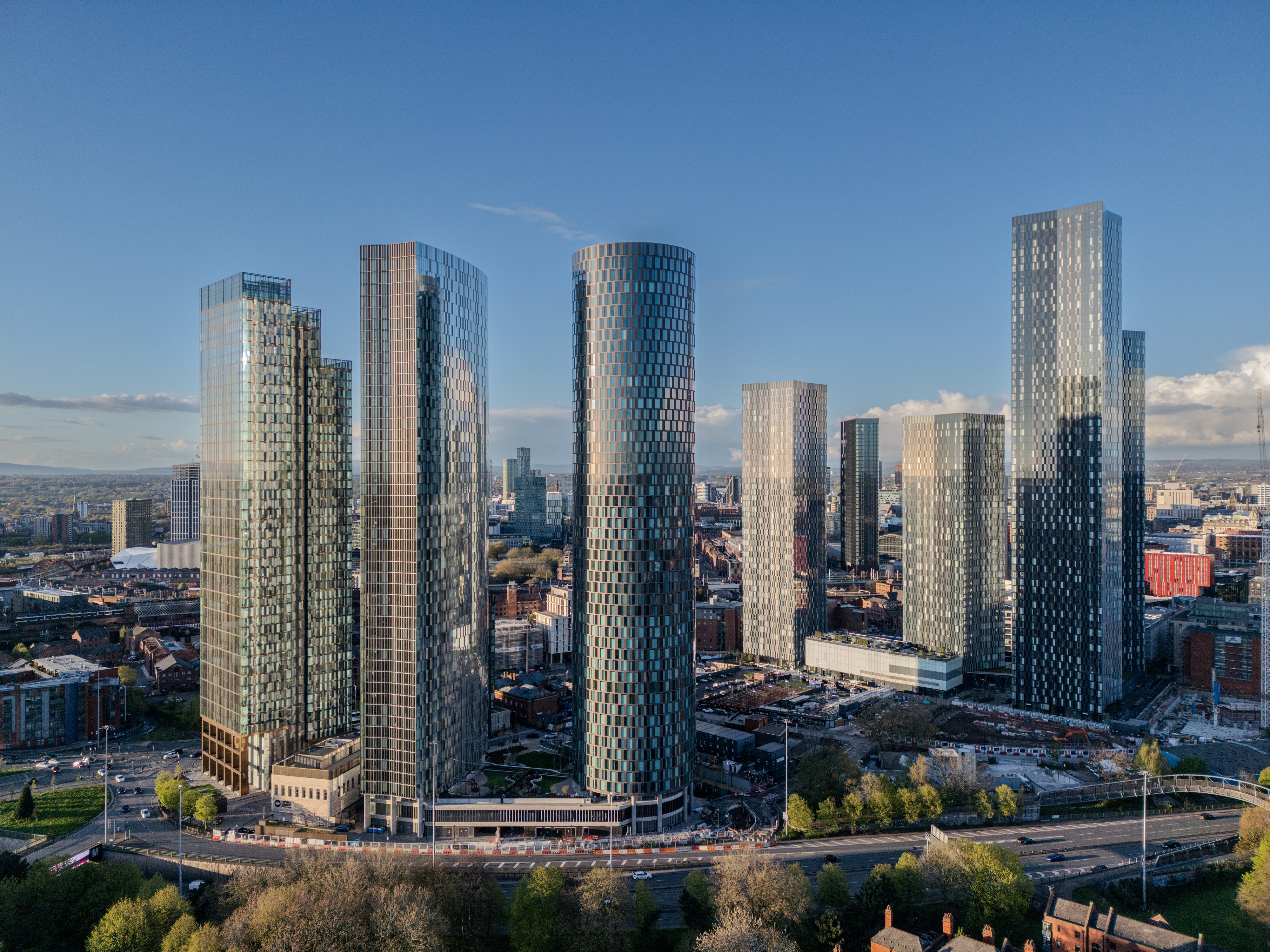 Crown Street Phase 2 provides 855 residential apartments across two 51-storey towers, known as The Blade and Three60, along with a new city centre park. A new public car park is concealed underneath the park and outline planning consent has been granted for a primary school as part of this phase.
