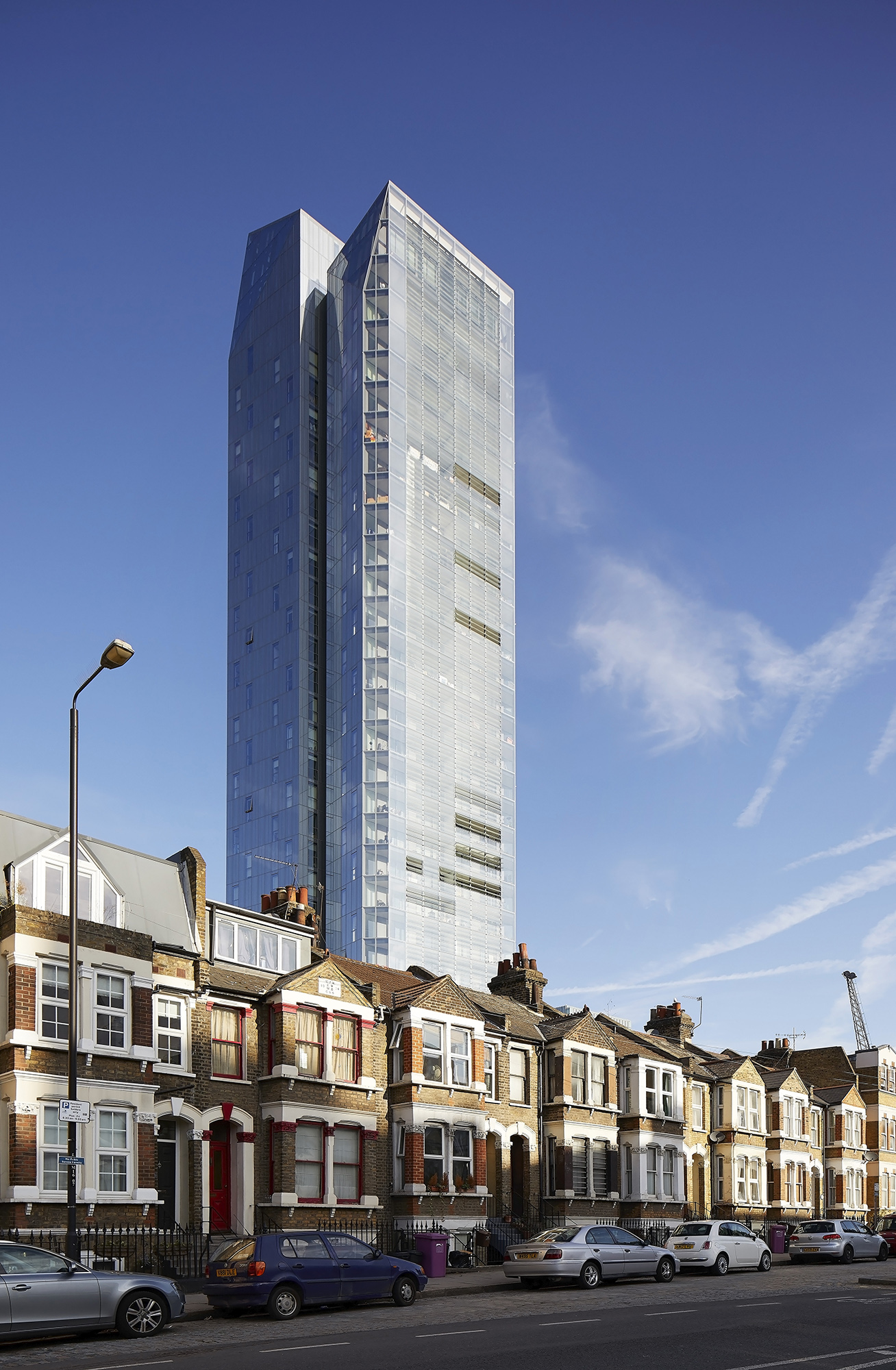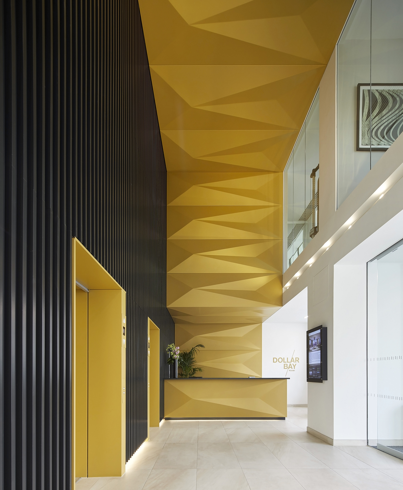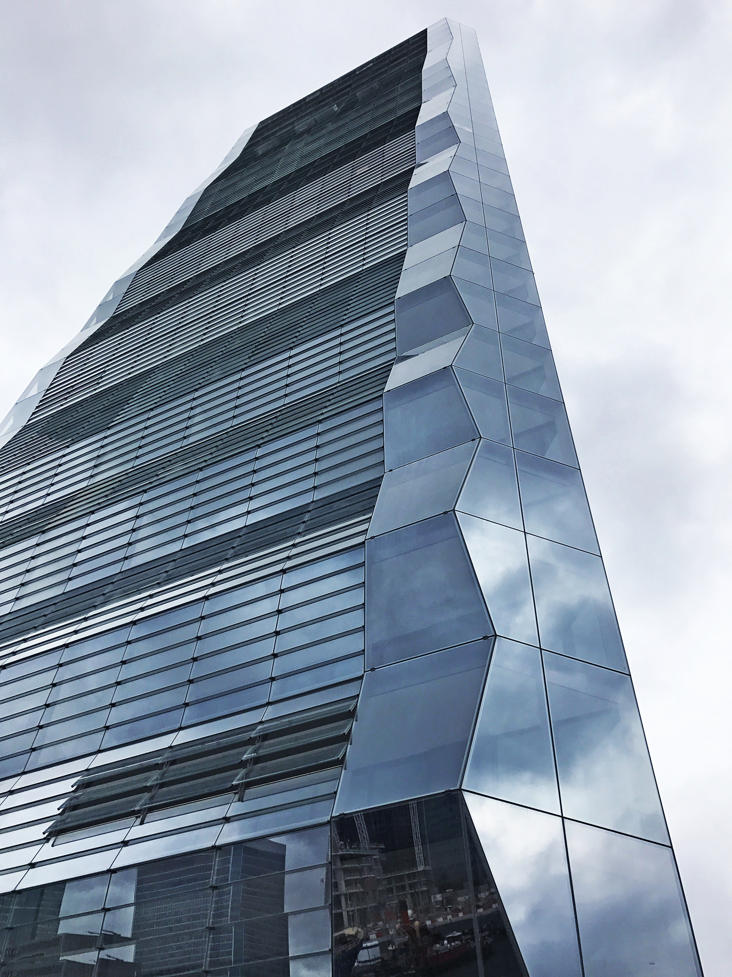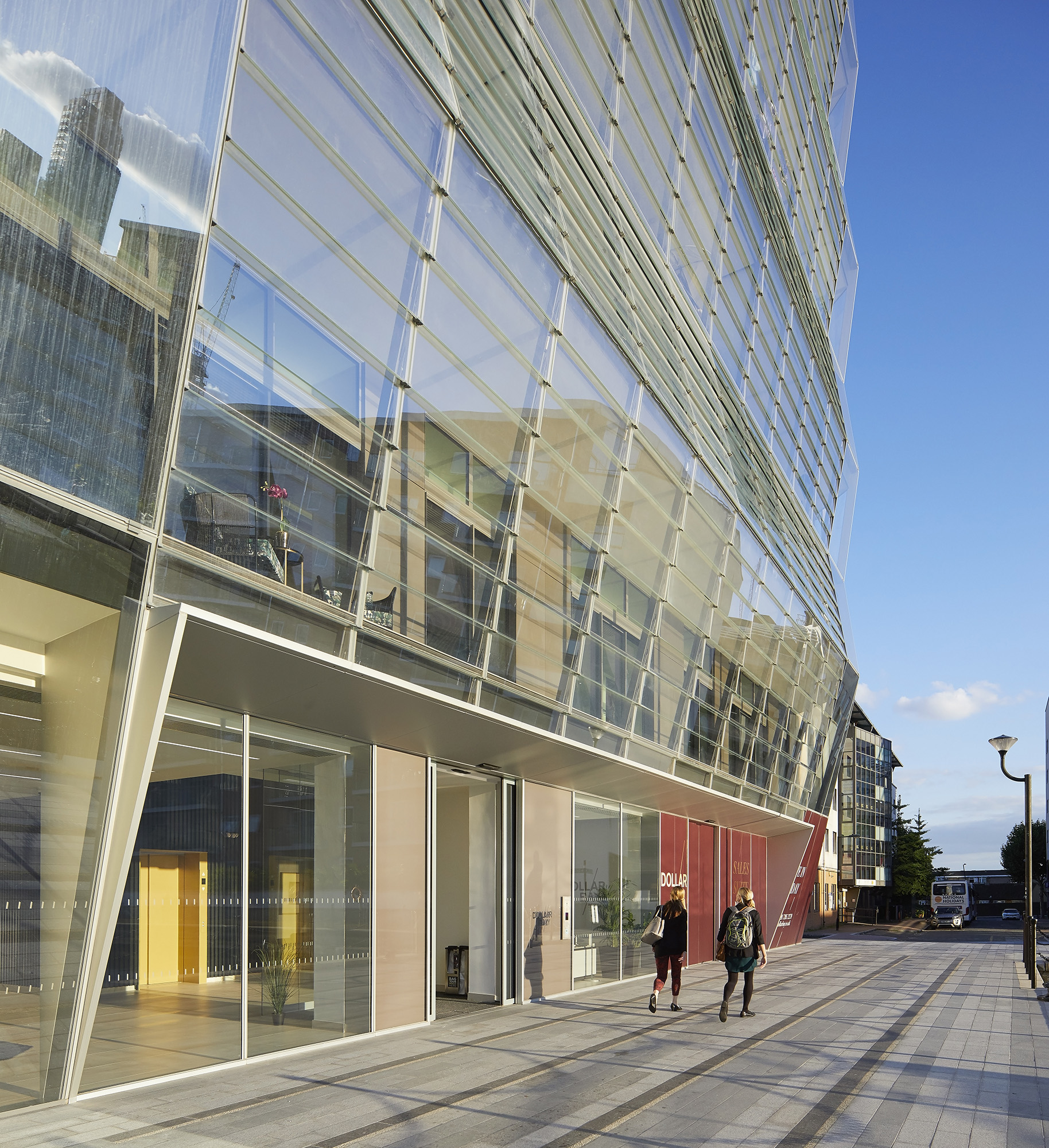 A simple rigour infuses every line of the tower's taut geometry. The building rises as two elegant crystalline forms fused together by the joint of the circulation core. The west façade facing the waterfront appears to ripple, its meticulously detailed folds and creases evoking a waterfall gathering pace as water descends. By resting lightly on the ground, additional space for the landscaped waterside public realm is created.