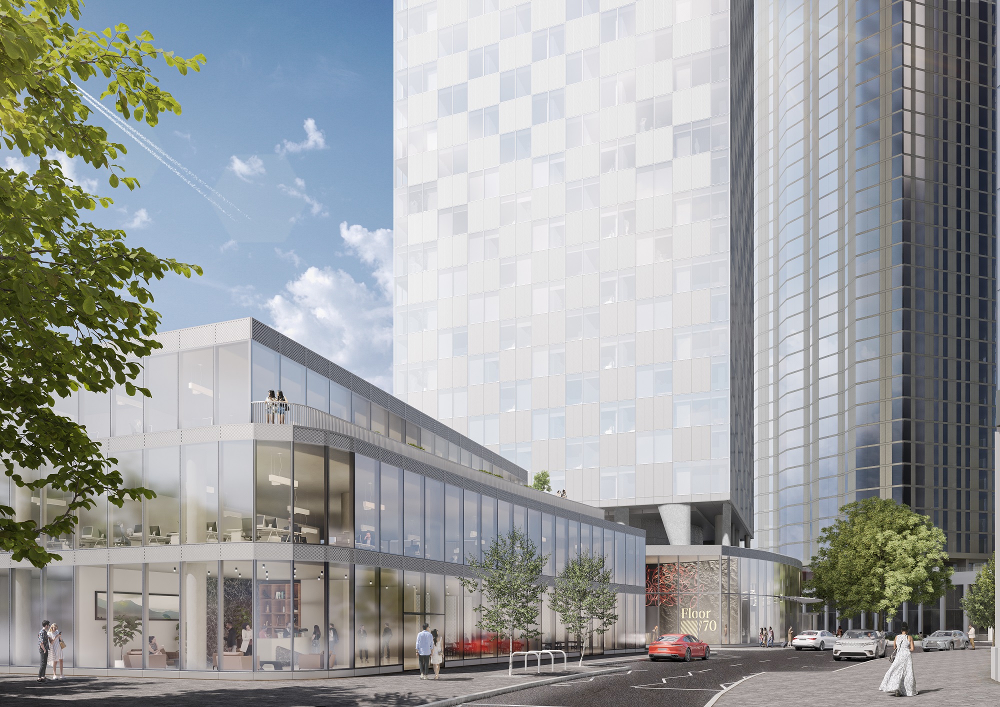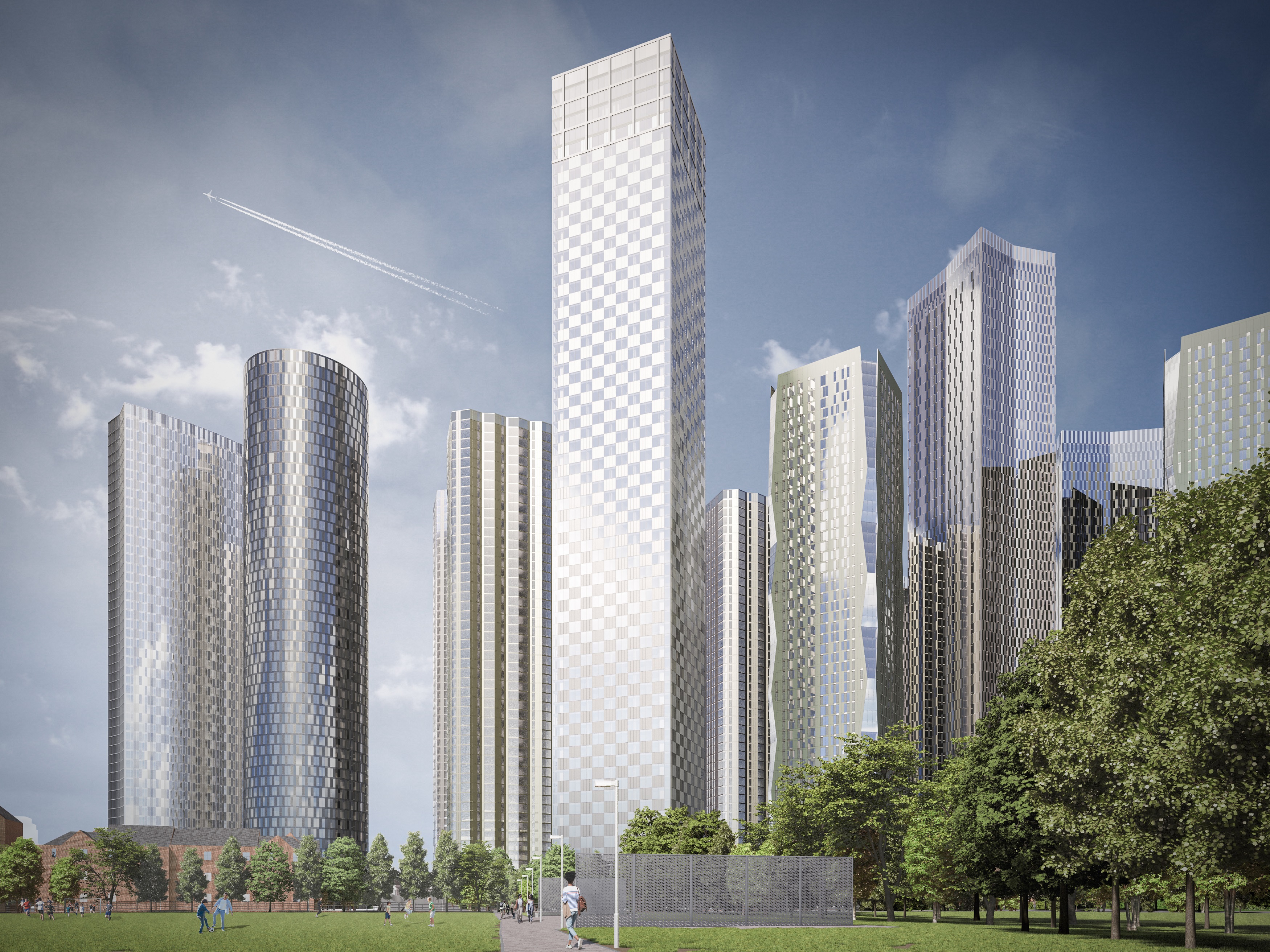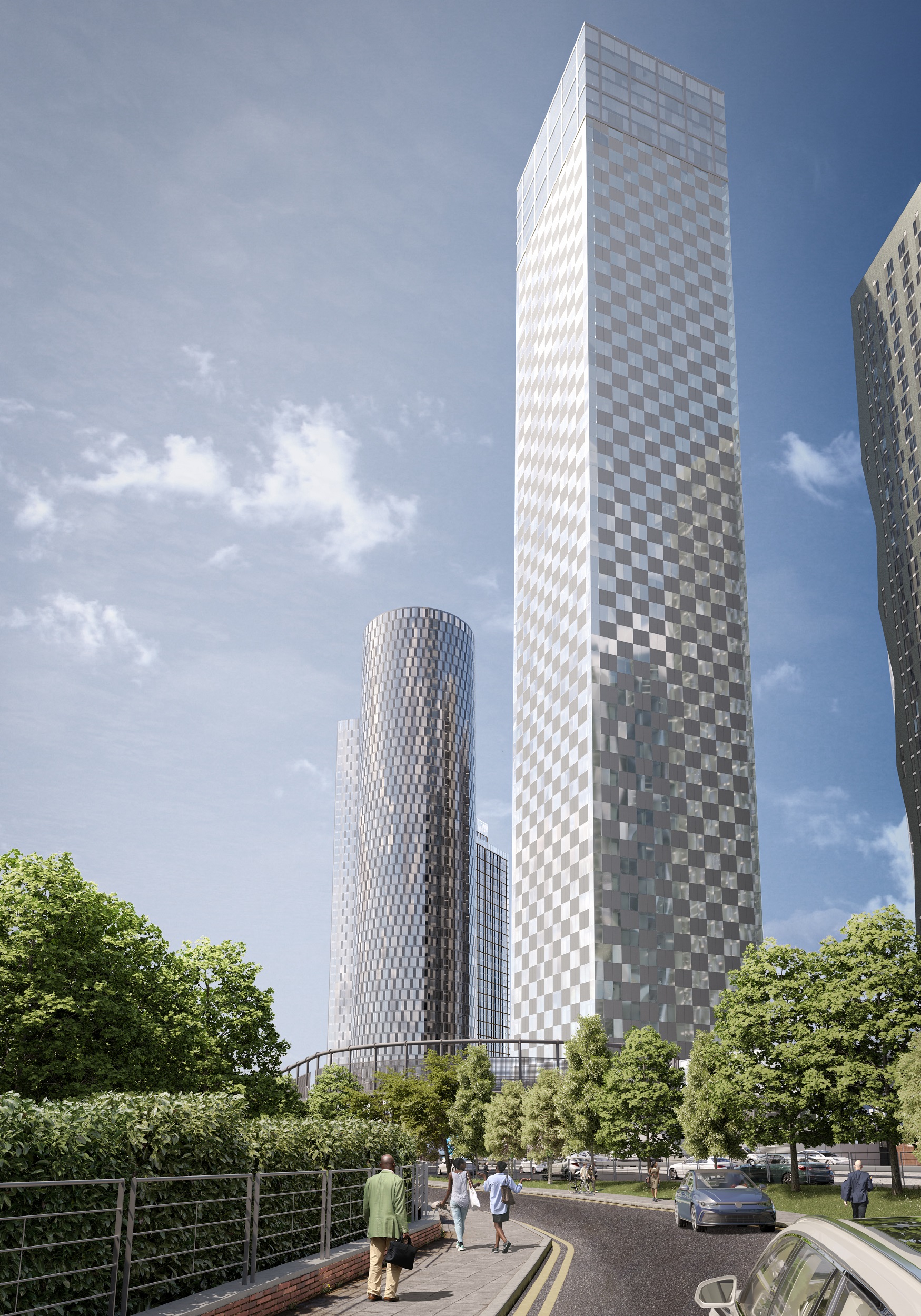 This beautiful and elegant 71-storey tower will be a new city landmark, positively contributing to the skyline of Manchester, and as the tallest tower within the cluster, marking the completion of the New Jackson neighbourhood. The tower sits above a 2-storey landscaped podium and a new 3-storey office building is proposed adjacent. The uppermost floor of the tower, Level 70, is dedicated entirely to an impressive public restaurant. The space runs along the full perimeter of the building, offering 360-degree views of Manchester.