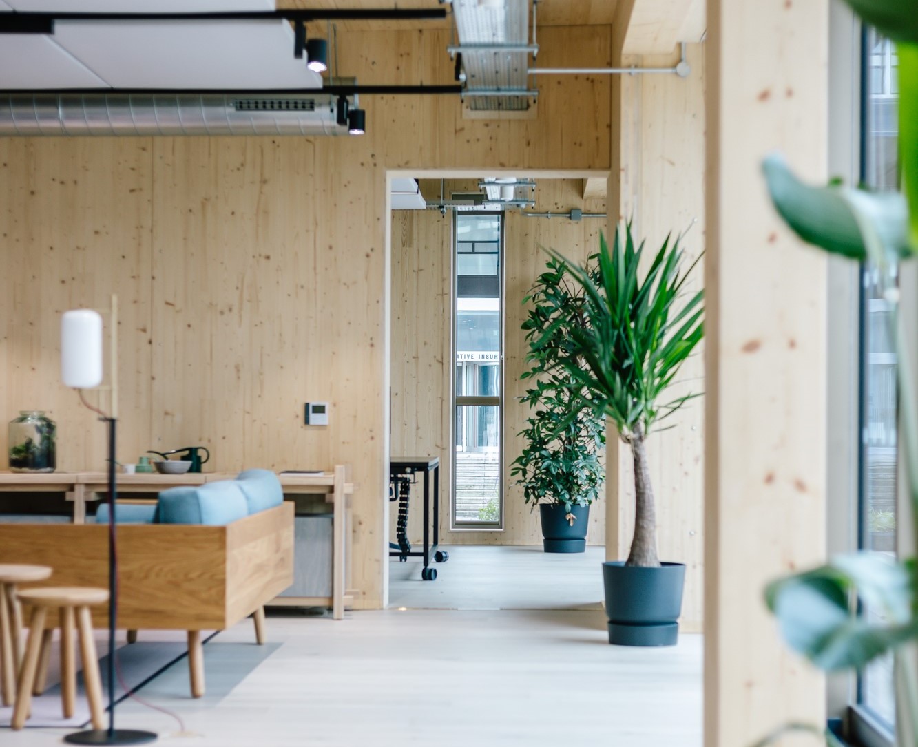 The CLT structure is exposed internally, and the building is clad externally in charred timber which gives an intriguing light and dark contrast between interior and exterior. The Pavilion has a high-performance external envelope, and energy for the building is generated via a rooftop photovoltaic (PV) array. Through this use of primarily natural materials and highly energy efficient design, the Pavilion is a showcase of the exemplary sustainability aspirations of NOMA.