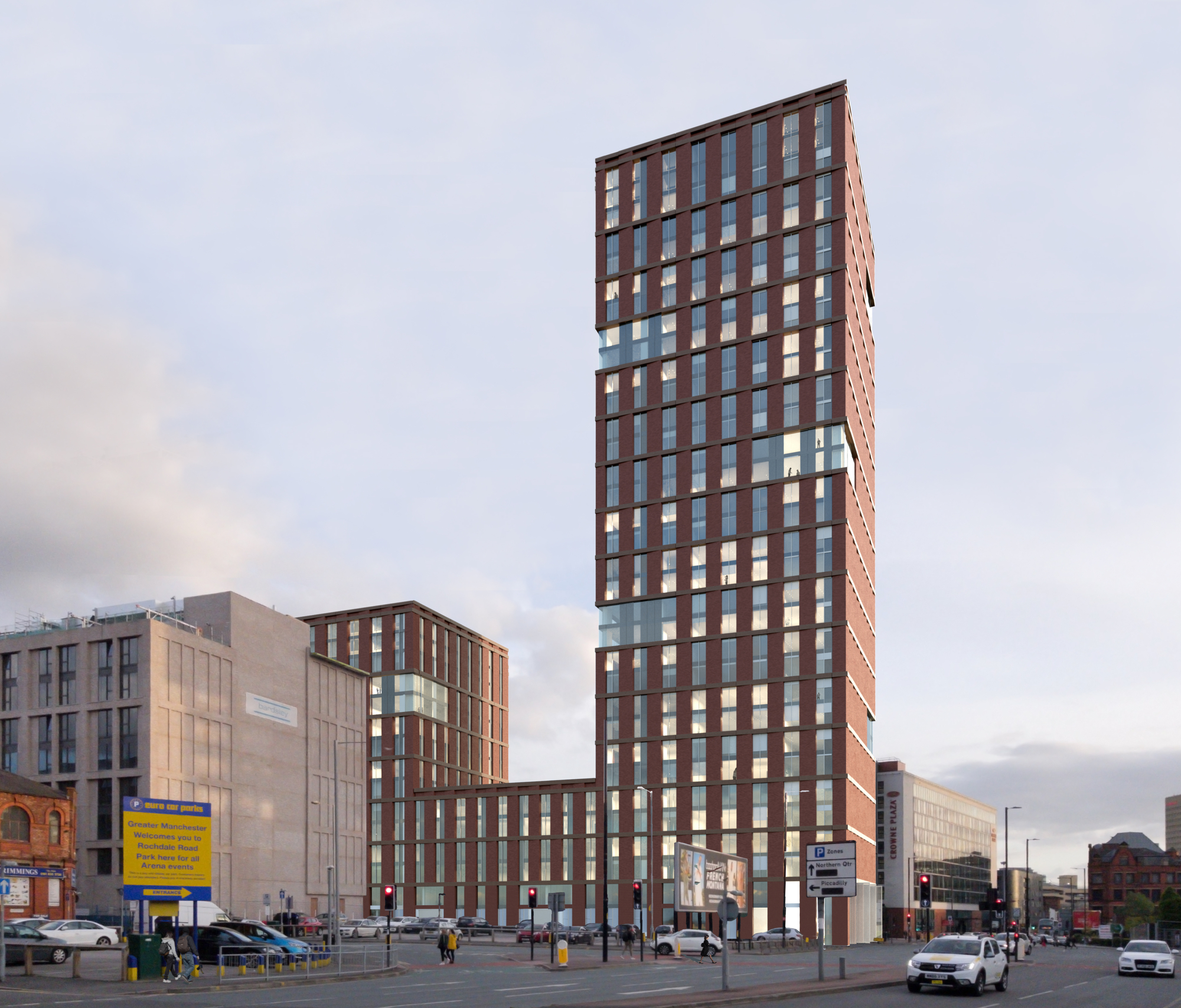 This high quality residential development forms part of the New Cross Neighbourhood Development Framework (NDF), which we helped develop. It serves the Private Rented Sector (PRS) market and supports the ongoing regeneration of Manchester city centre by providing 373 apartments made up of 1, 2 and 3 bed homes, including affordable housing, and 12 serviced apartments over the top of two retail units at ground level, and a new public realm at the junction of Swan Street and Rochdale Road.