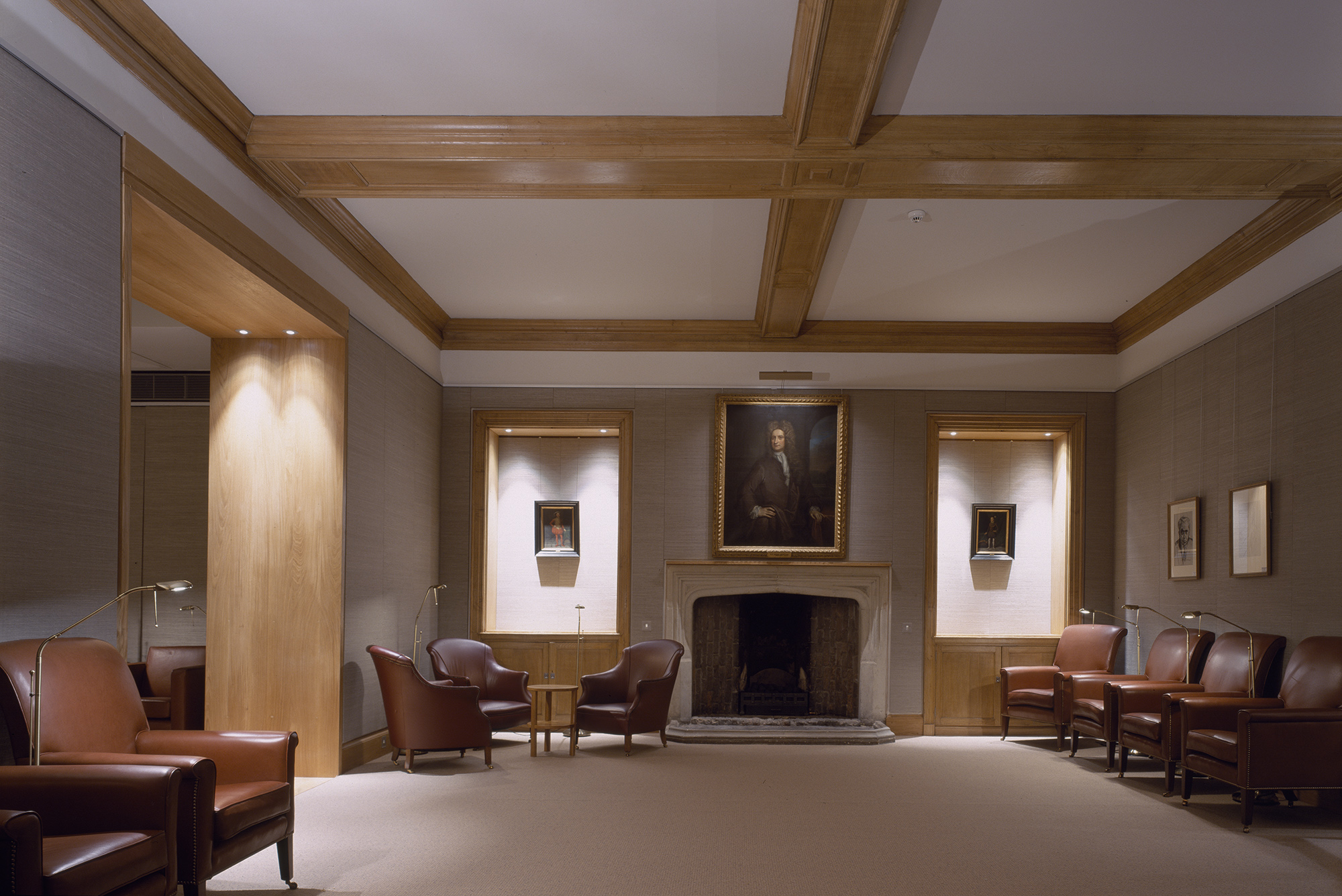 Common rooms are arranged over two levels, allowing the reinstatement of the double-height windows at the ends of the building and interlocking volumes separate graduate and under-graduate students. The contemporary expression of the new interiors is distinguished by the timelessness of natural materials. While traditional techniques were employed to restore original features, the latest insertions whose finishes comprise stone, leather and oak, are detailed with simplicity and clarity.