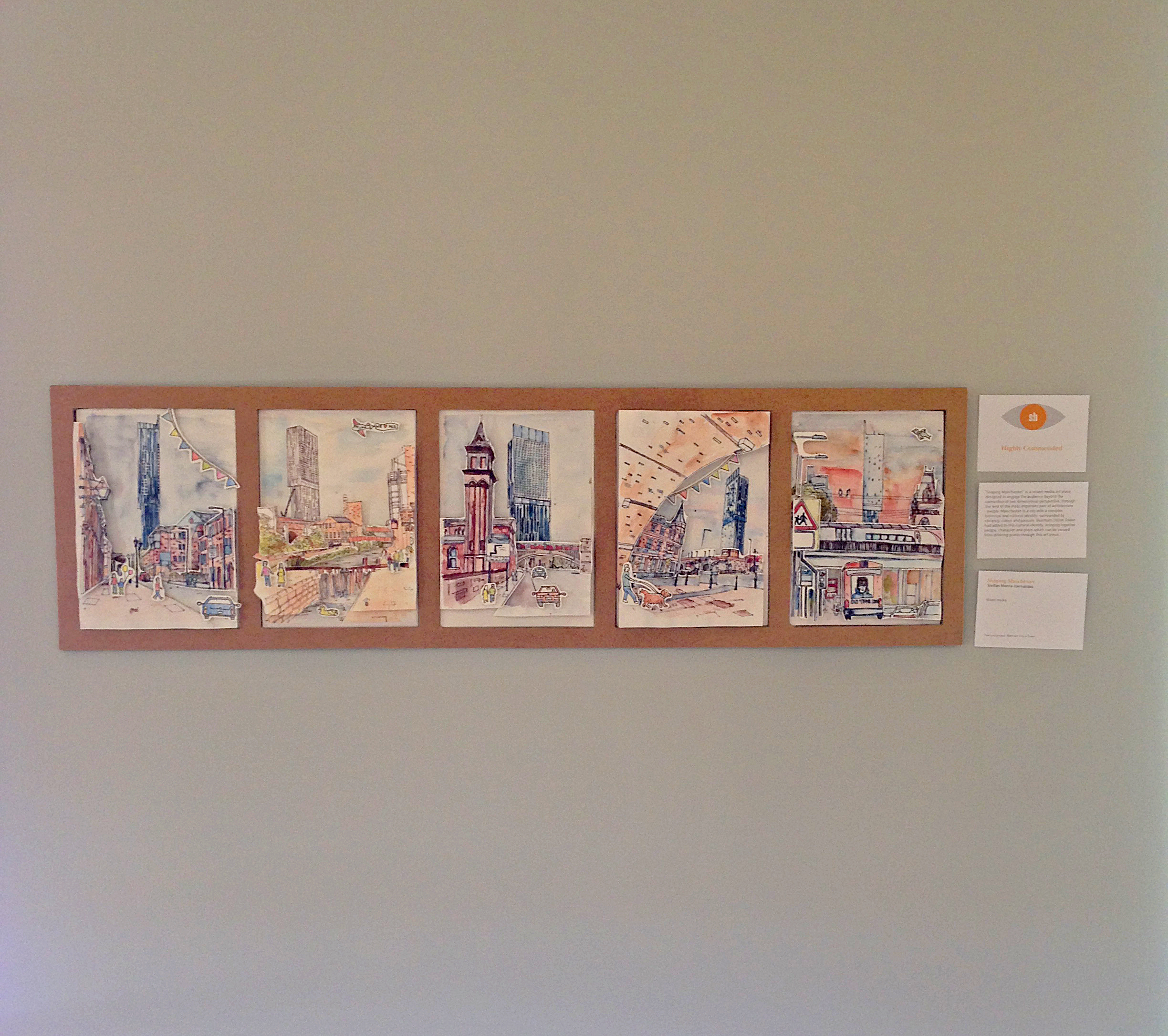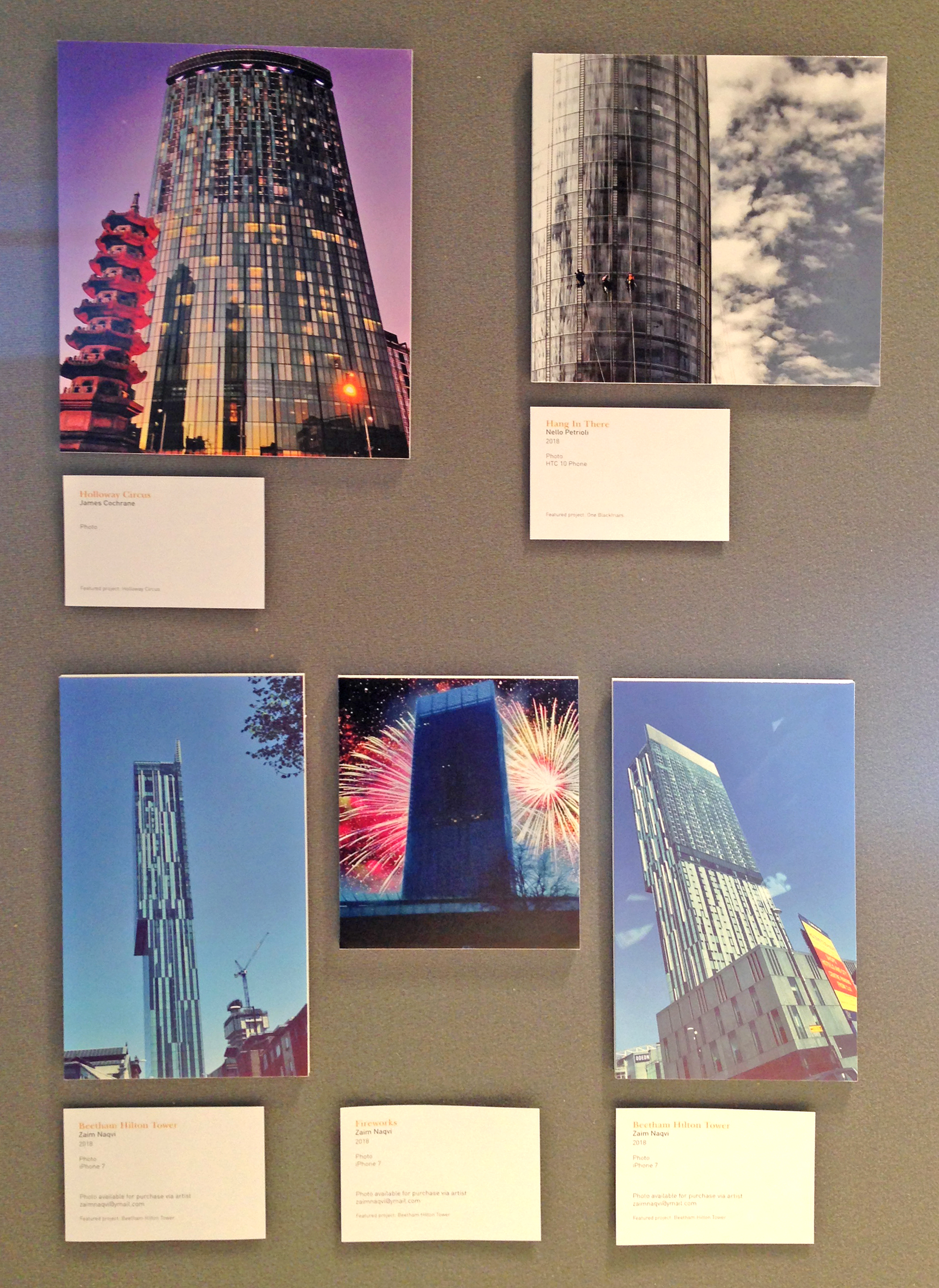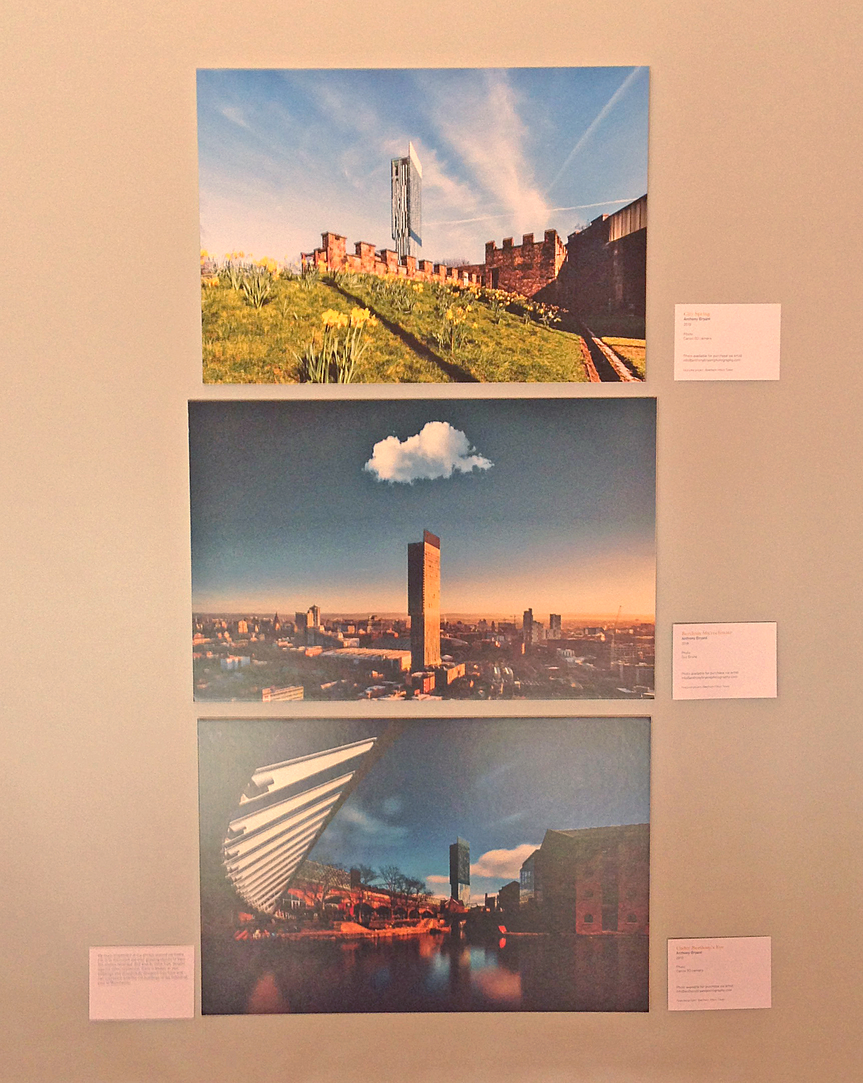 - "Shaping Manchester" by Steffan Morris-Fernandez, a playful and exuberant take on the way in which SimpsonHaugh’s iconic Beetham Hilton Tower provides a constant backdrop to the myriad daily activities in the city;