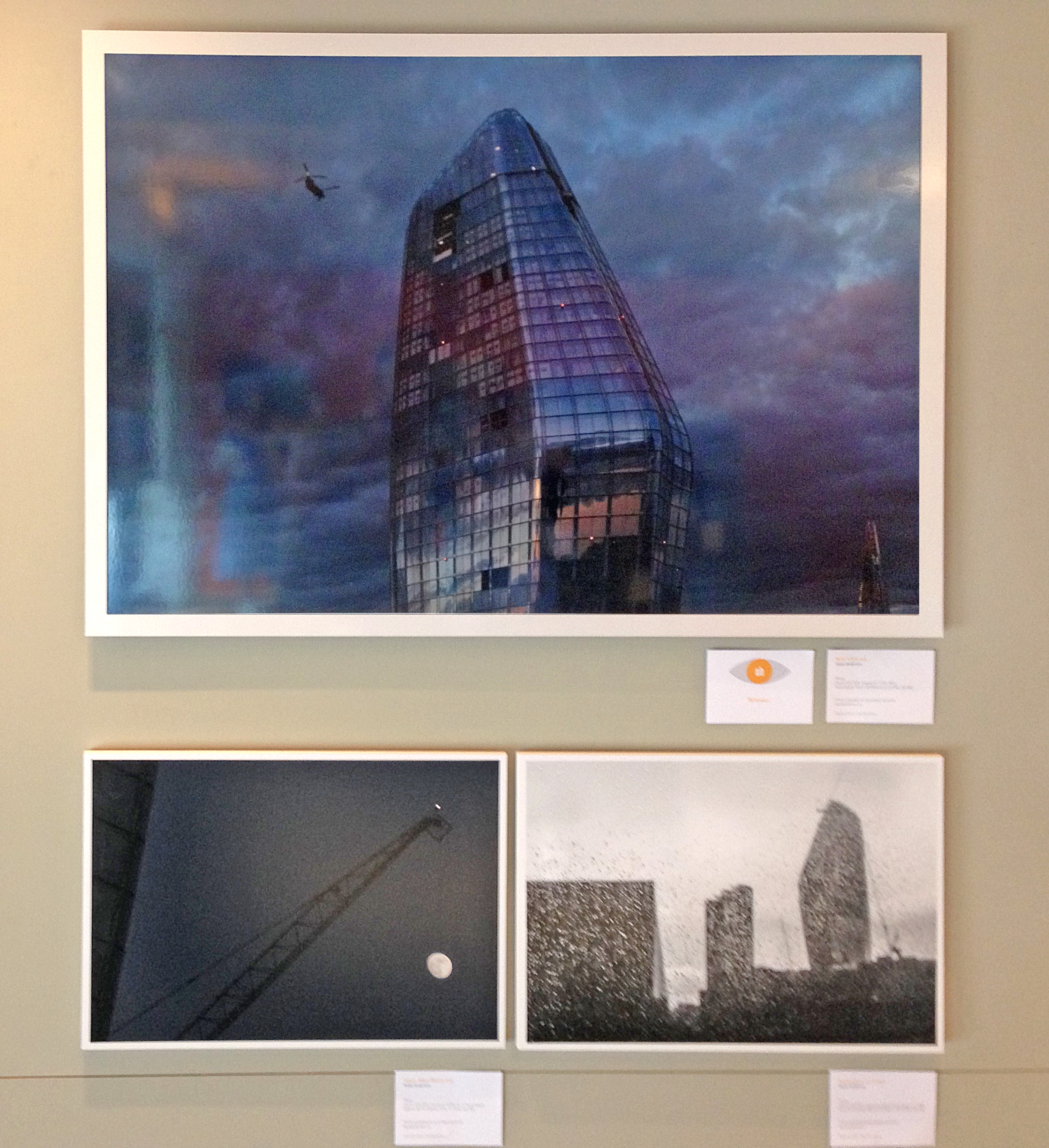 The exhibition also included a competitive element. Our team of judges – SimpsonHaugh’s David MacDonald and Matthew Ayres, and Caro Communication’s Diane Hutchinson – spent an afternoon debating the merits of each piece in order to pick which they thought provided the most surprising, fresh, unconventional and unique view of our building/s. The judges' chosen winner is Katie Anderson’s “RAF Chinook”, a thoughtfully composed photo of One Blackfriars, which they found visually arresting, especially the opposition of the Chinook and the Shard, and the lighting and reflections.