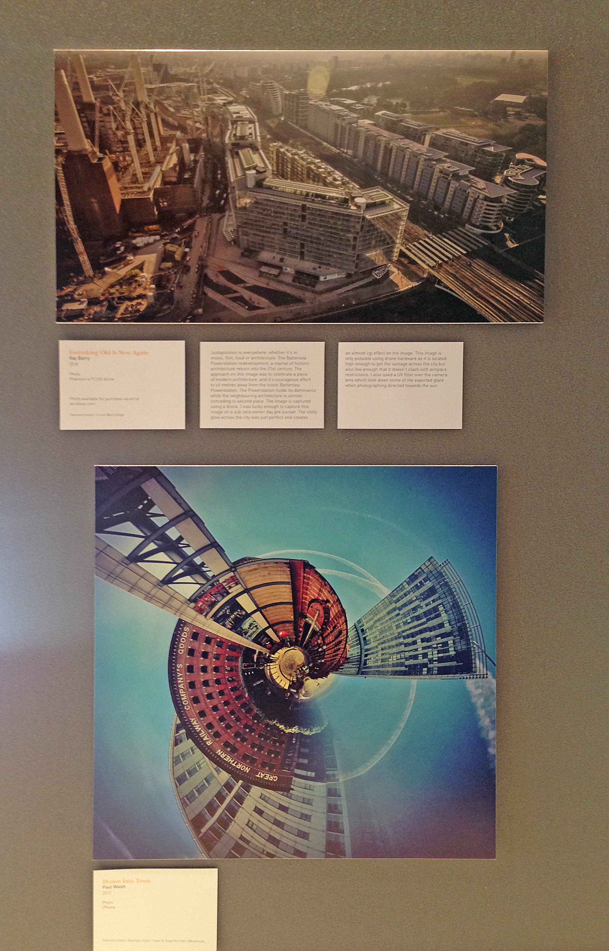 - "Urban Hive" by Daniel Slattery, a Gursky-esque image of the repetitive, gridded façade of the Beetham Hilton Tower, which on closer inspection reveals hundreds of tiny vignettes of personal domesticity