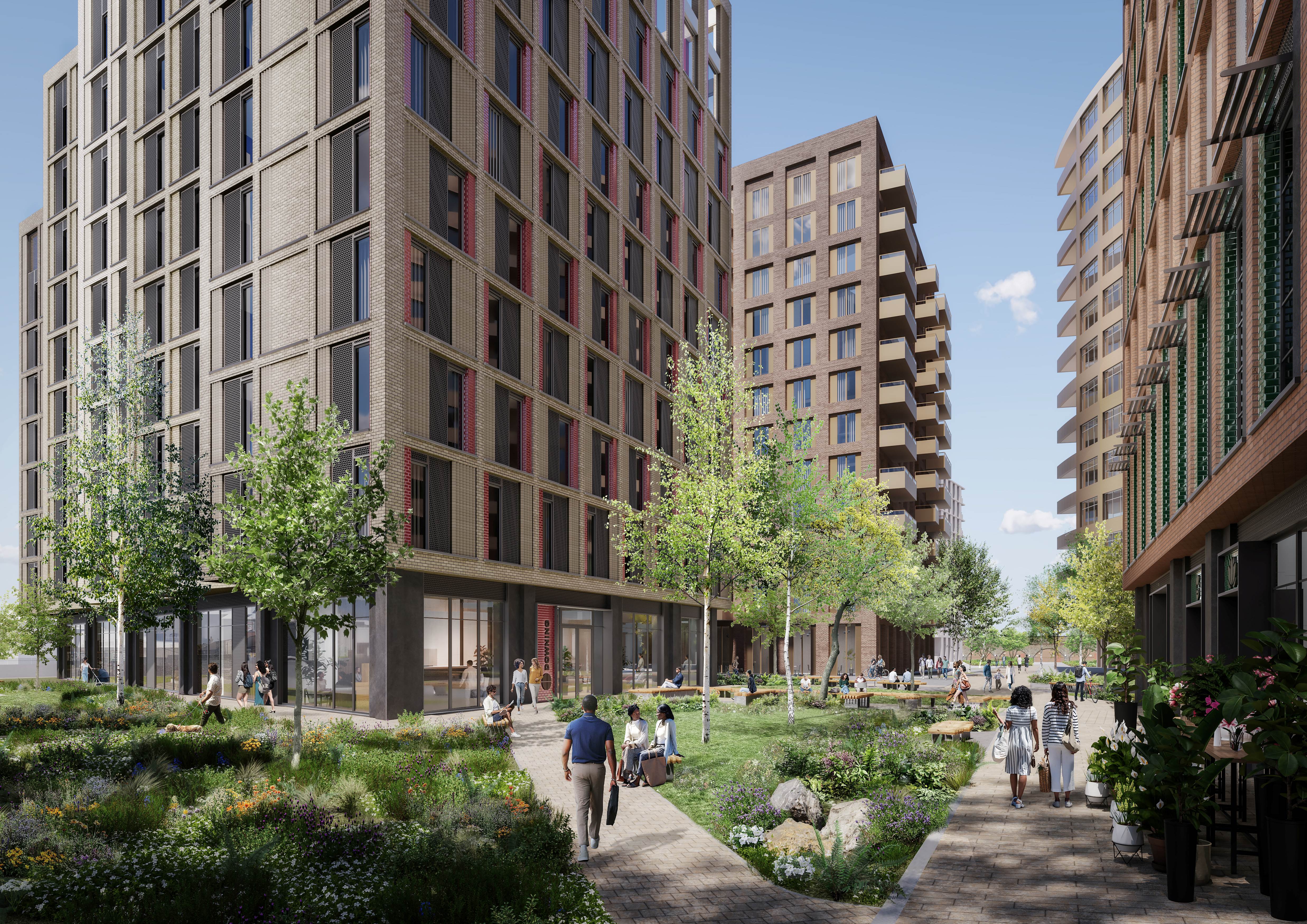With placemaking at the heart of the design, extensive public realm covering an area of 3,715 sqm will be created, maximising greenery and generating green links such as the Wandle Walk, which will connect the community to local landmarks like the River Wandle. The mixed-use site will also feature 1,226 sqm of light industrial space, offering high-quality workspace to local SMEs and start-up companies.