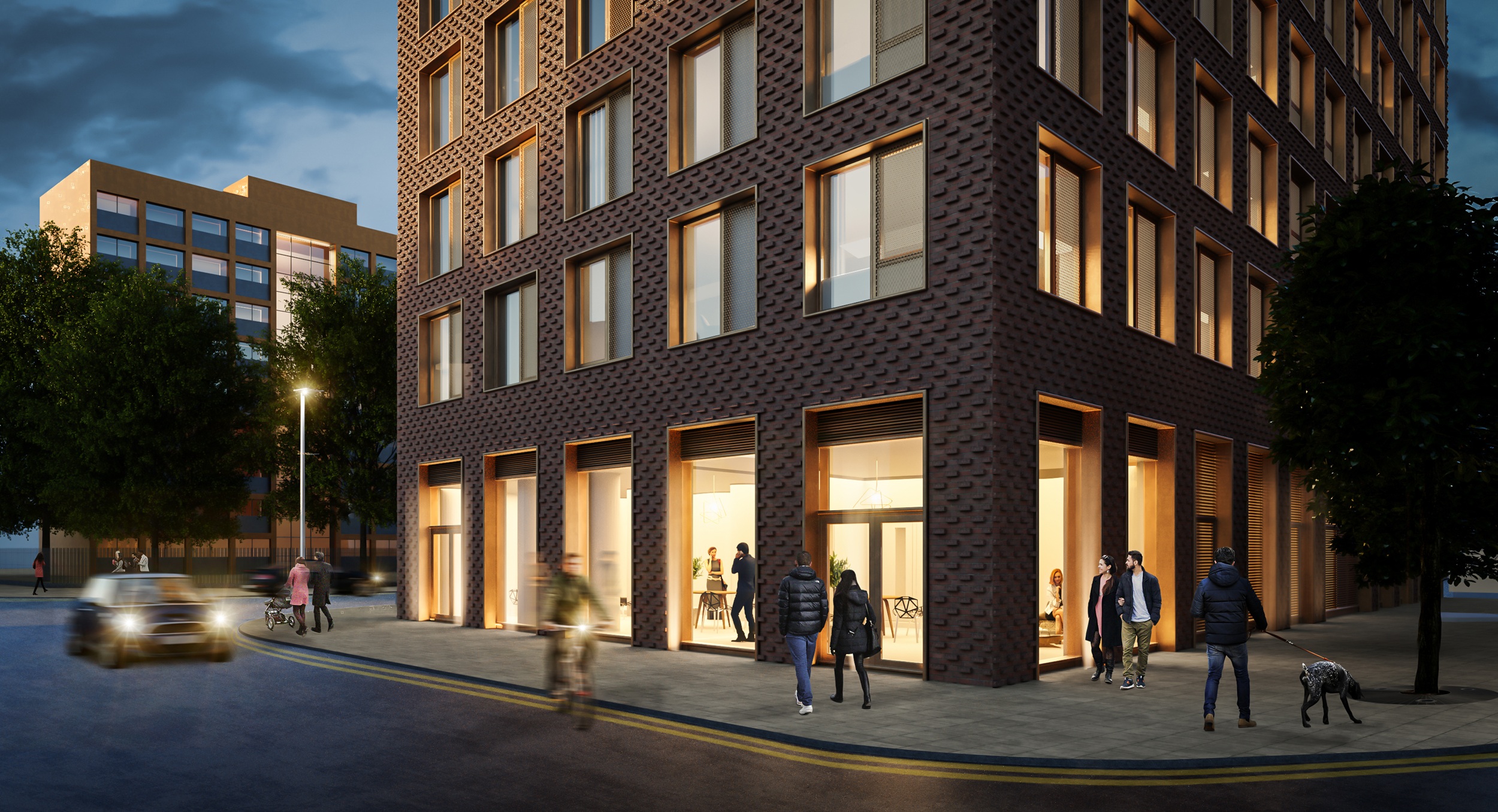 Targeting BREEAM “Excellent”, the designs seek to deliver a high-quality facility for the growing student population as well as the local community. The scheme will provide 146 student beds in the form of studio apartments and 10-bed cluster flats with shared kitchen facilities, generous shared amenity space, and a ground level community hub.