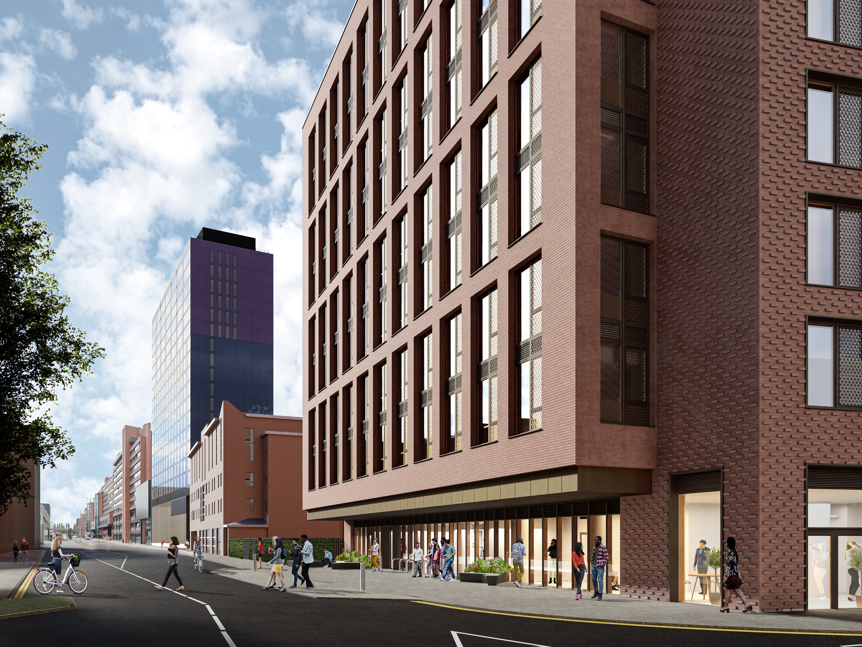 Located in Hulme, Booth Street West is set to introduce a new flexible and high-quality student residence to the area. The scheme looks to renew a previously derelict site and invigorate the local neighbourhood by enhancing the overall student experience while contributing positively to the area's economic growth and cultural diversity. The proposals also include a new Community Hub, incorporated within the ground floor of the building.