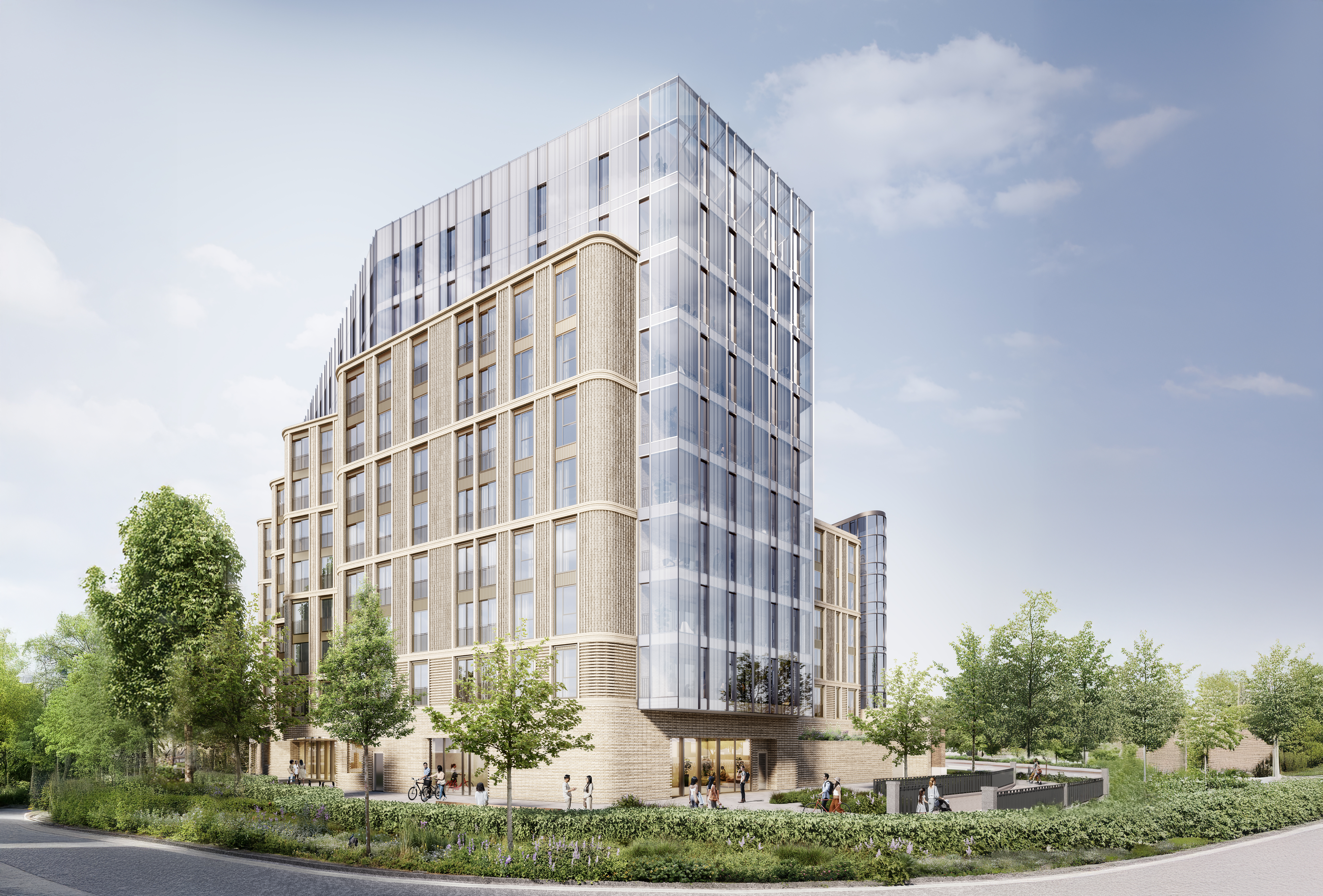 At ground and first floor levels, a clearly articulated horizontal plinth introduces recessed entrances and defines the 314 sqm of commercial space. Together with enhancements to the surrounding public realm, this active frontage establishes a welcoming threshold and contributes to a vibrant streetscape.