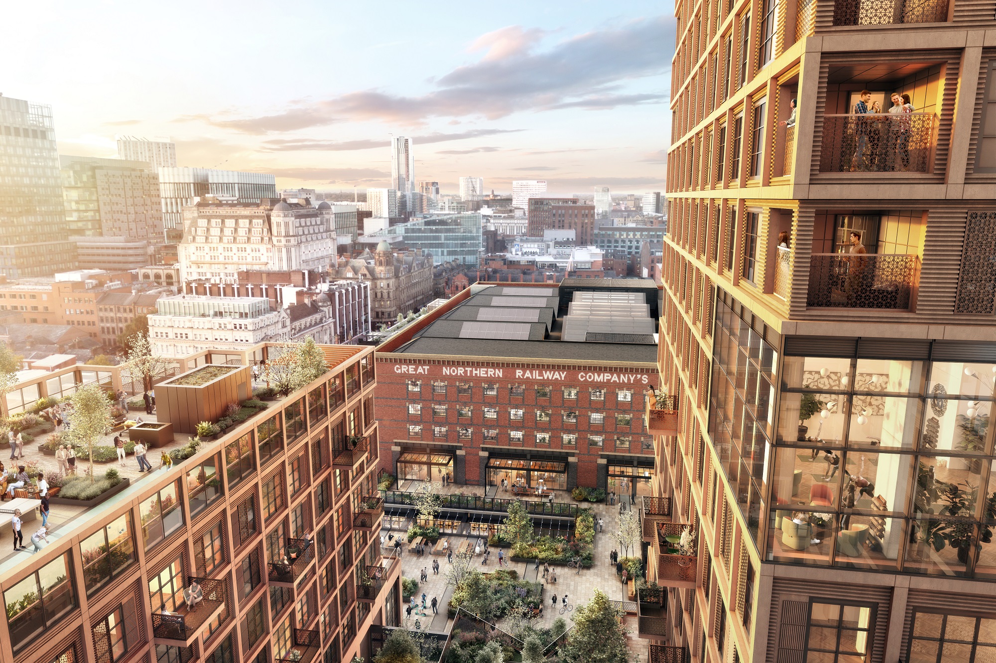 The site’s underused public realm, which includes the Great Northern Square, will be completely transformed, creating a green, biodiverse oasis within the city, and introducing vibrant new pedestrianised streets, improving connectivity and legibility. The listed viaduct structure to the south of the warehouse and the existing upper-level mews space will together become a generous landscaped public space incorporating a rich variety of independent retail, restaurant and leisure uses.