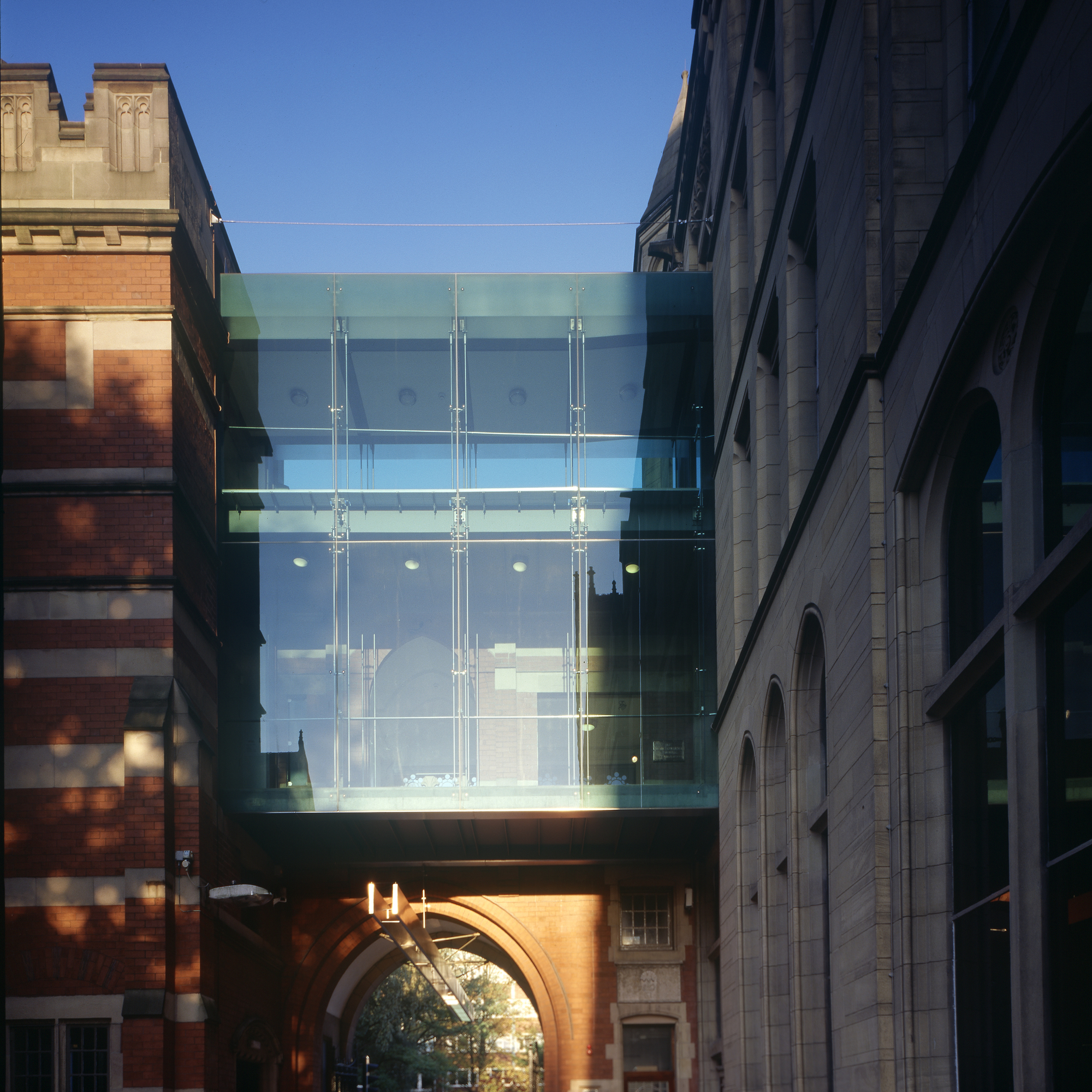 A new lead-clad building provides an entrance, 3 additional galleries and strategic links between the original buildings. A new glazed ‘bridge’ allows the collections to be experienced in a logical and fully accessible sequence. While these insertions are undoubtedly contemporary, they are also sympathetic to the existing fabric. The sensitive incorporation of modern systems, to provide a controlled environment and adequate lighting in the original galleries, demanded extreme care and fastidious attention to restoration and conservation.