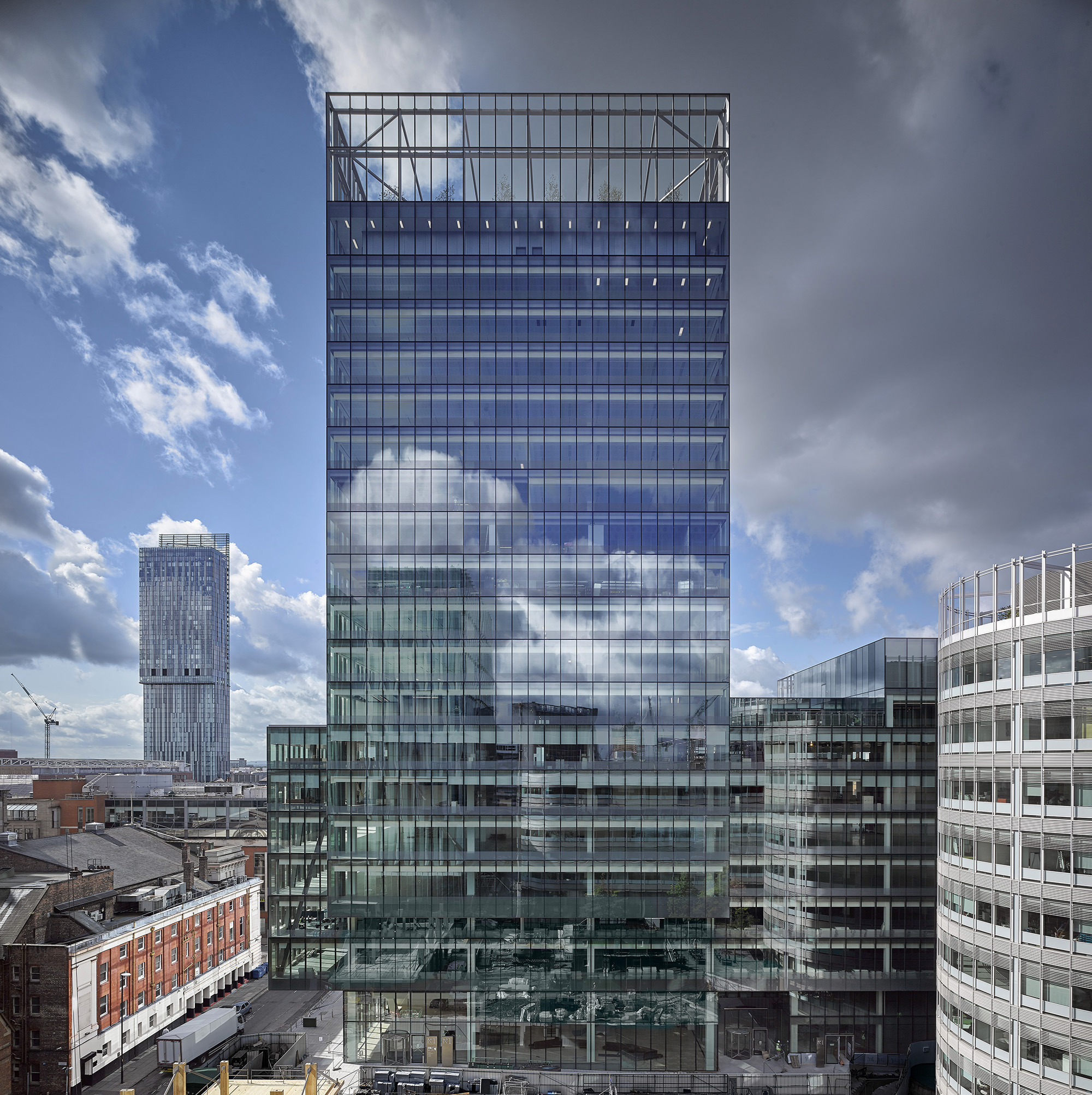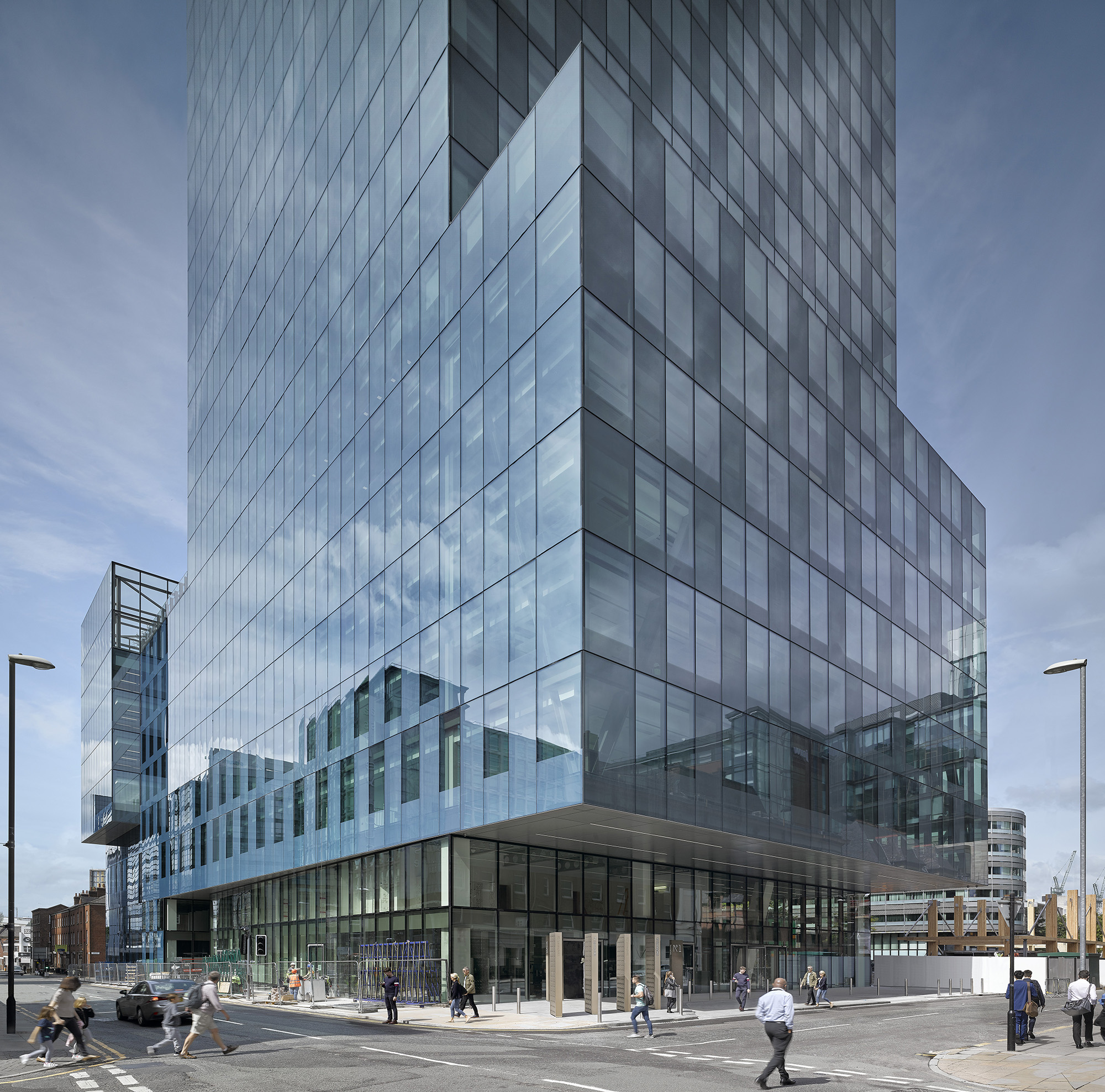 Our brief was for a sustainable landmark office building with spacious and flexible floorplates to mark the success and culmination of the Spinningfields Masterplan, Manchester’s thriving office-led, mixed-use district.