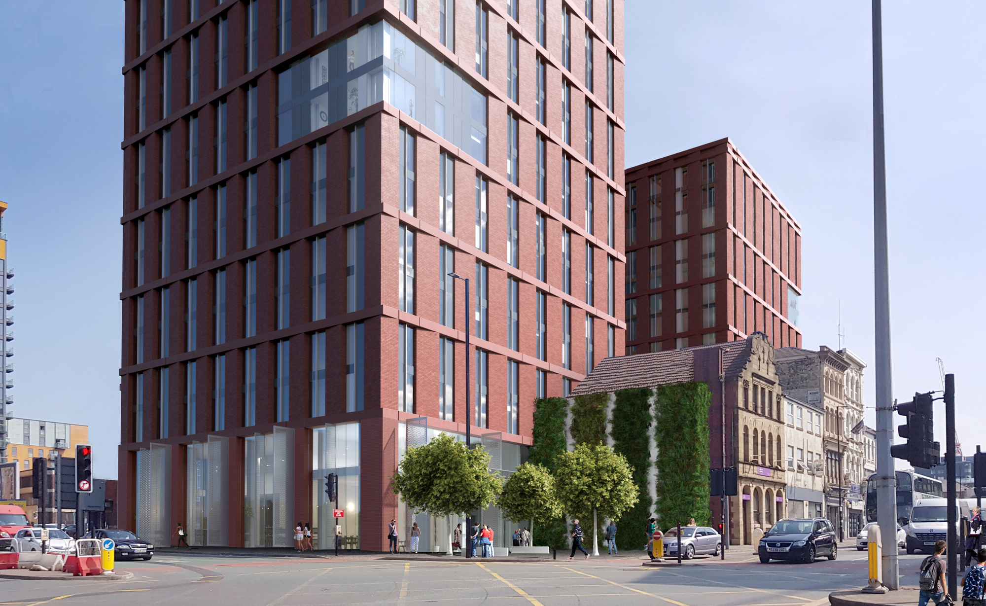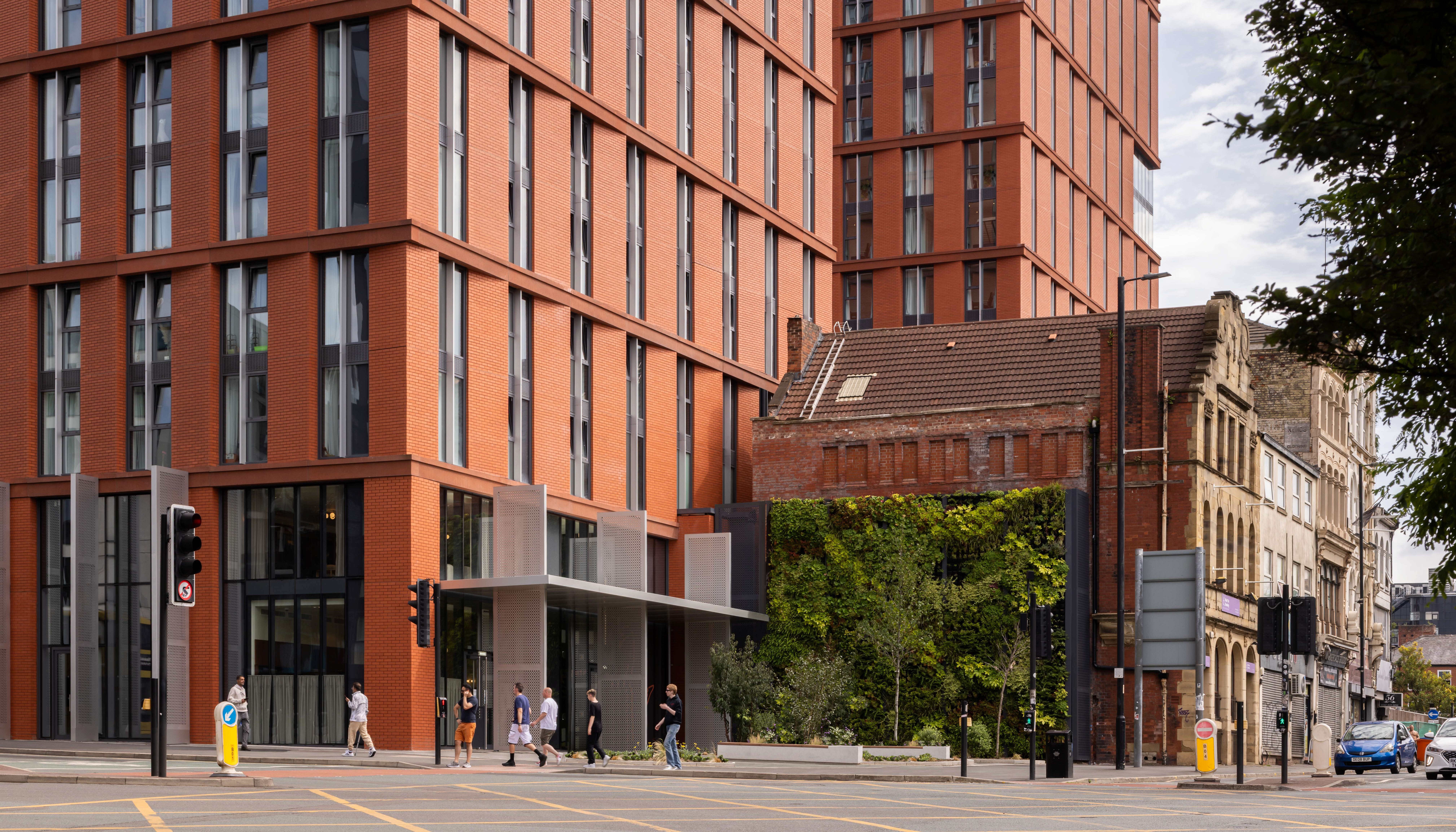 This high quality residential development forms part of the New Cross Neighbourhood Development Framework (NDF), which we helped develop. It serves the Private Rented Sector (PRS) market and supports the ongoing regeneration of Manchester city centre by providing 373 apartments made up of 1, 2 and 3 bed homes, including affordable housing, and 12 serviced apartments over the top of two retail units at ground level, and a new public realm at the junction of Swan Street and Rochdale Road.