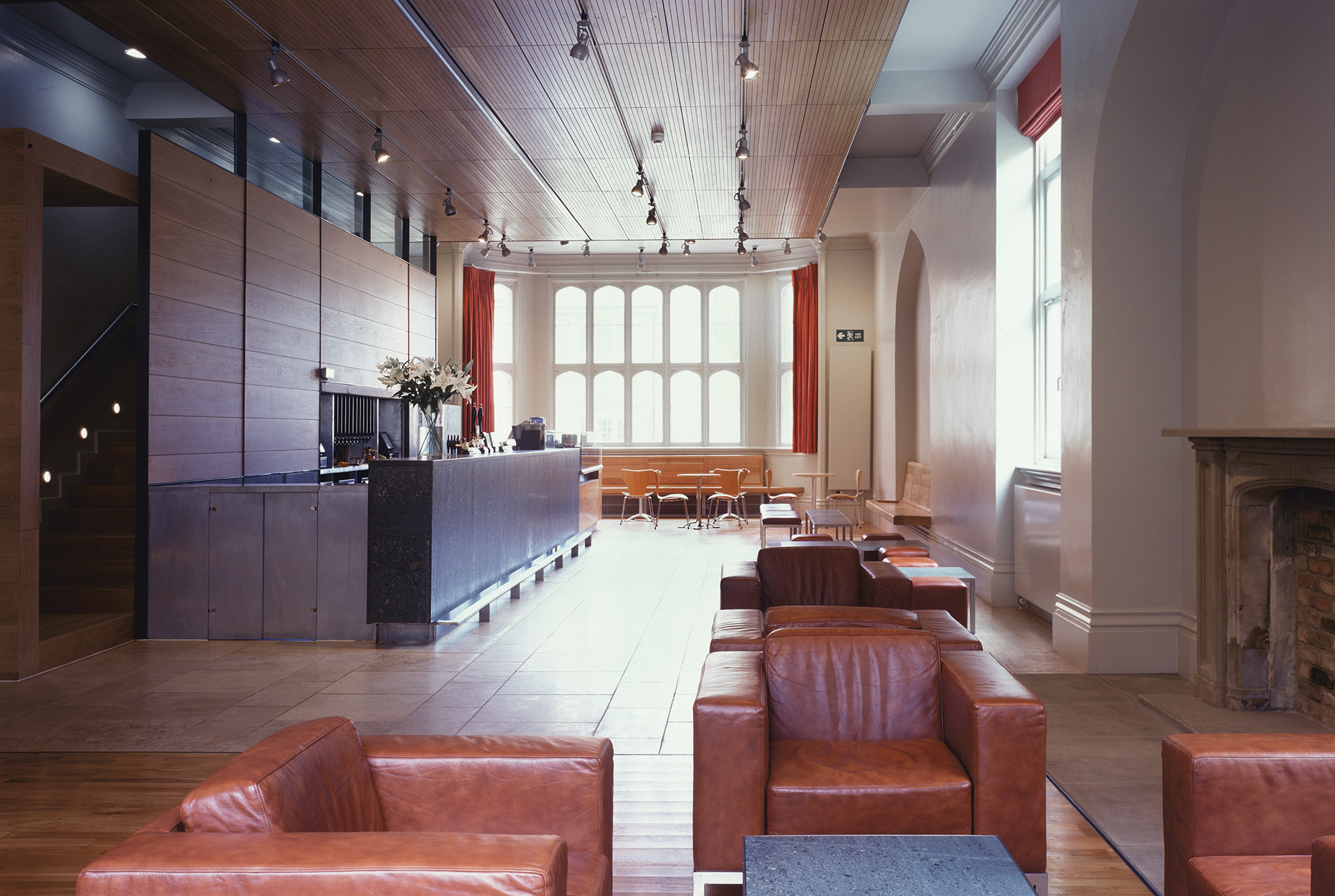 The result of a successful competition entry, the design of the student facilities comprises the conversion of an 1830s Grade II listed lecture theatre that overtime had been insensitively altered. Identified as an ideal opportunity to consolidate the students’ facilities in an upgraded, self-contained and stylish new environment, the work demanded an imaginative response to conservation and restoration.