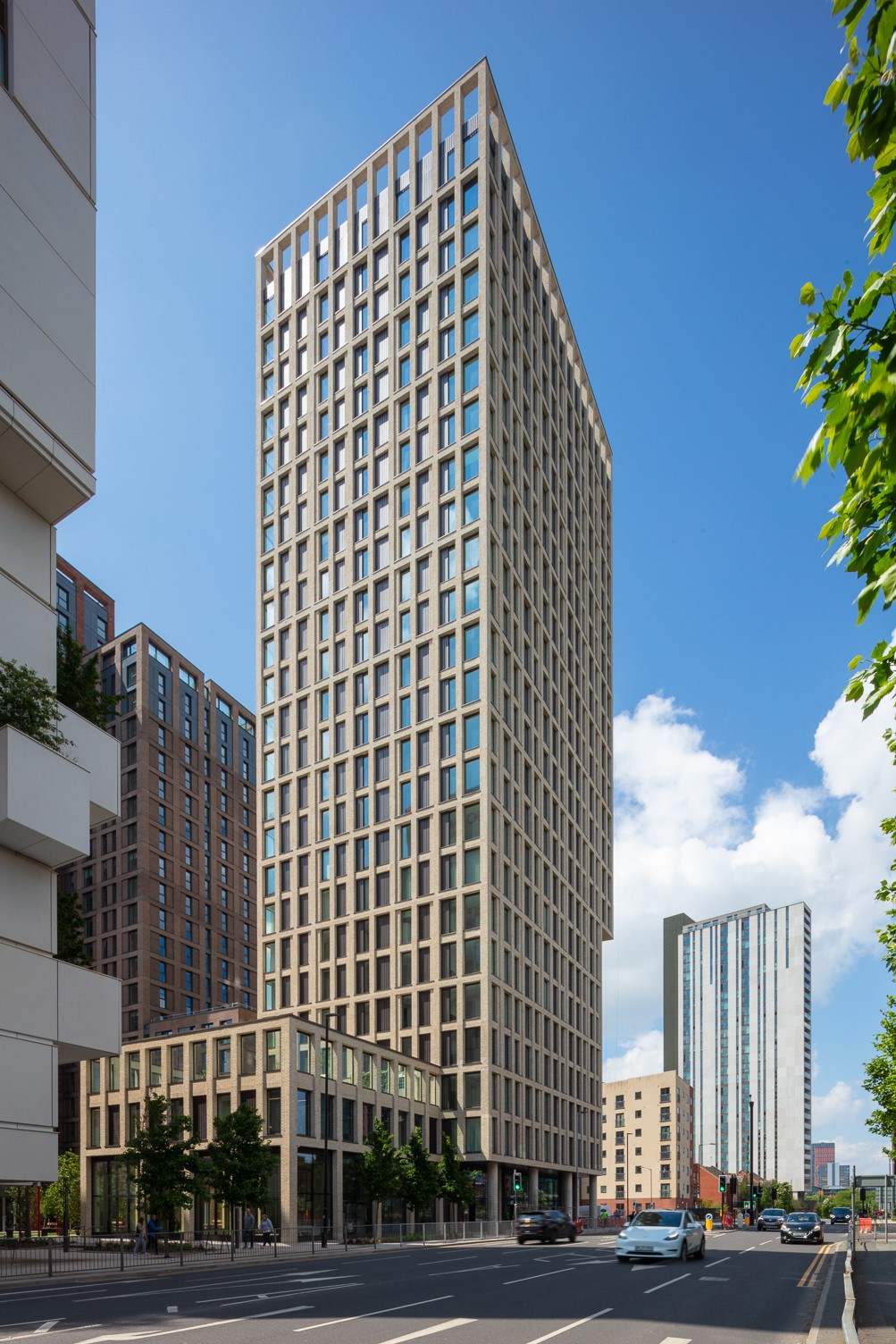 Rising to a height of 25 storeys, the design creates a slender, elegant form, which is articulated in plan to edge and contain the new public space. The configuration of the plan allows approximately 65% of the apartments to enjoy dual aspect. The new open-plan homes are designed to maximise a sense of space and natural light. Full height windows will provide extensive, panoramic views across the city, and all apartments will include natural ventilation via openable rapid vent panels integrated within the façade.