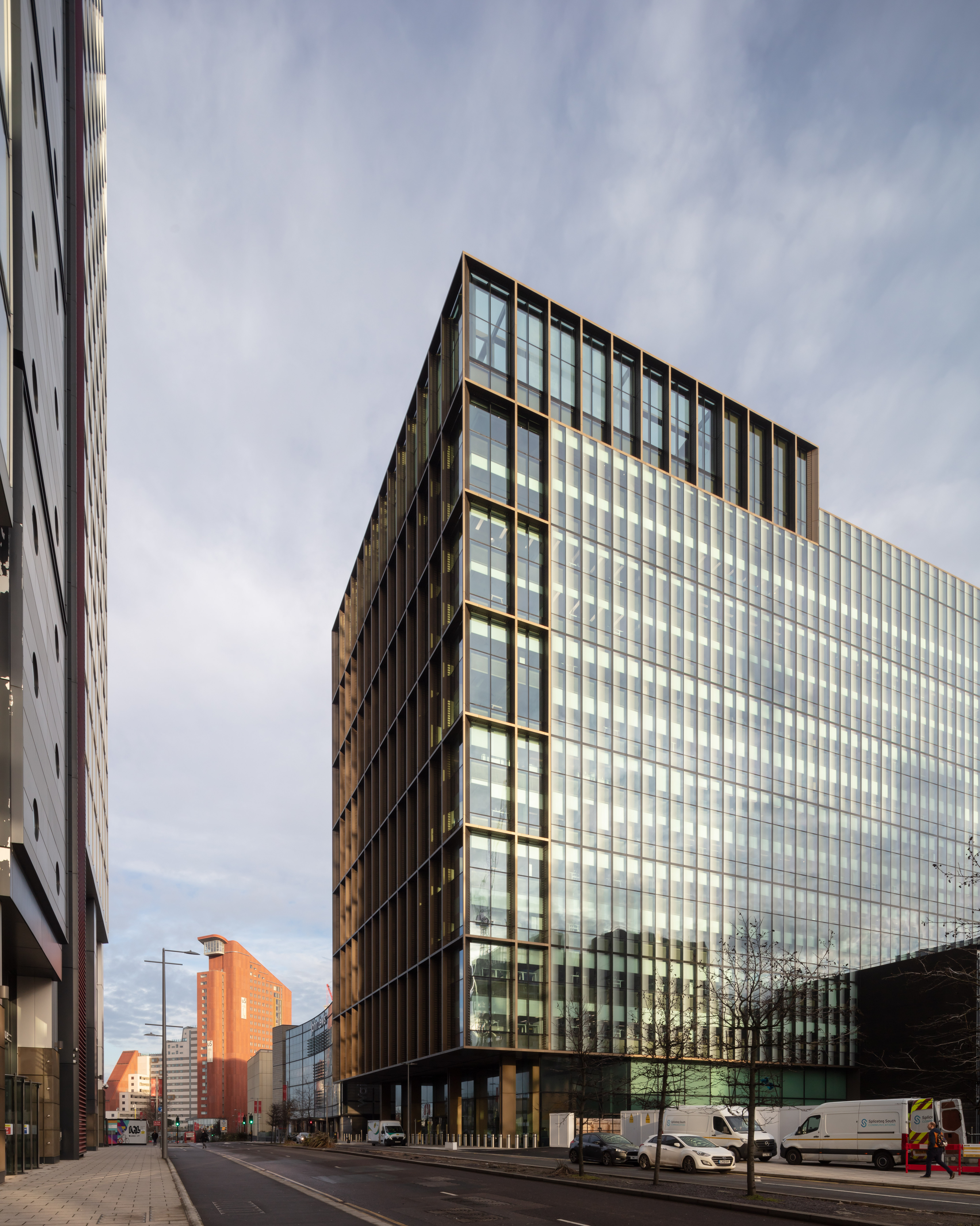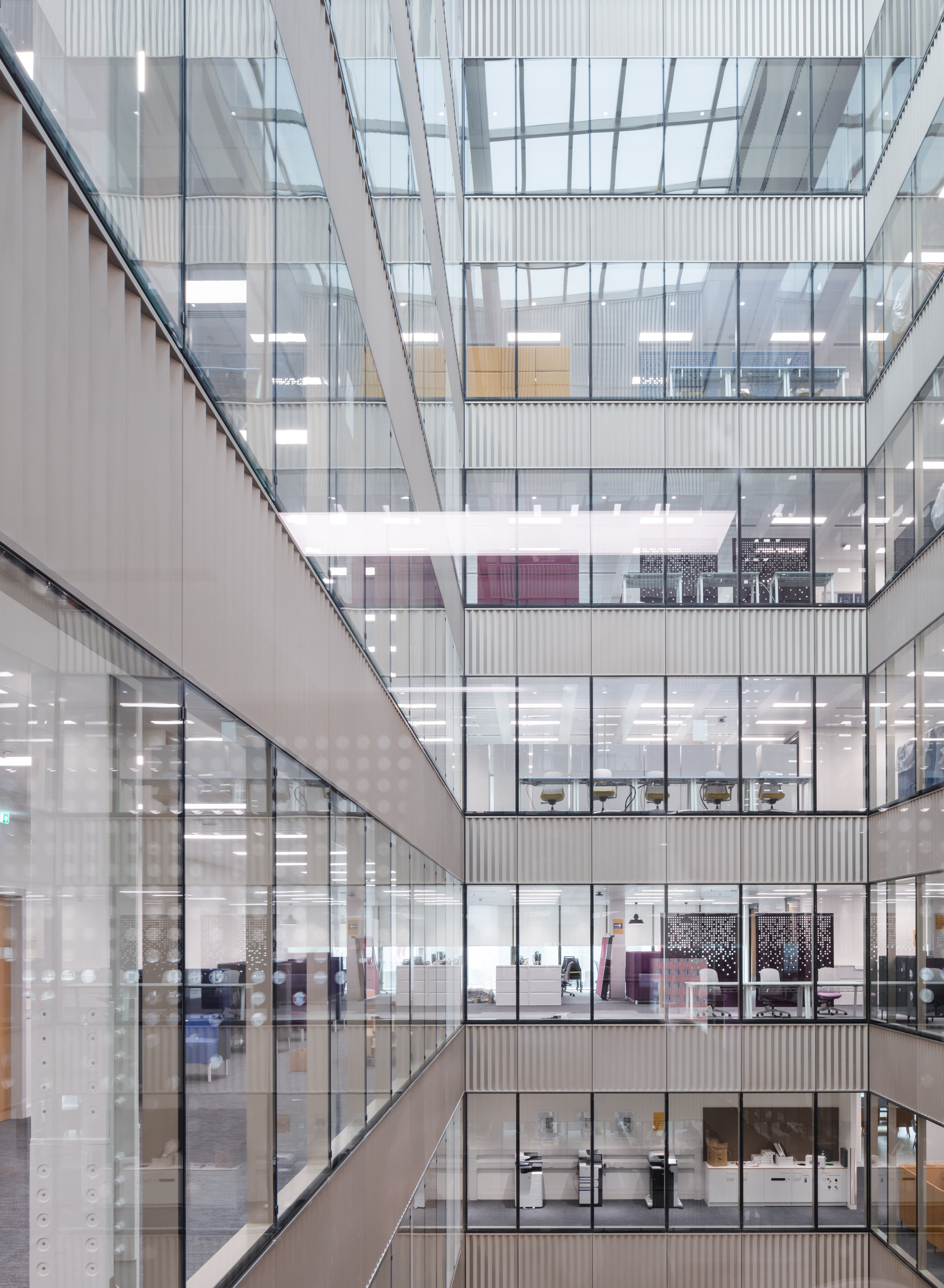 A combination of half and full office floorplates over 12 storeys provide open, flexible, and efficient Grade A office space with excellent natural daylighting and views out to the surrounding urban quarter. A glass-enclosed atrium is centrally positioned between a split core and offers cross-floor and inter-floor views from the office accommodation.