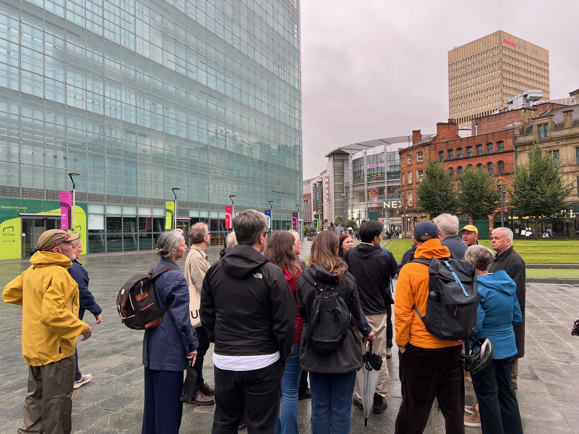 Starting at the pioneering 4 Angel Square at the heart of the NOMA neighbourhood, the architectural walk took the group to a number of SimpsonHaugh's masterplanning and built projects. We described our work on the Millennium Masterplan and the projects - Shudehill Transport Interchange, Urbis, and No. 1 Deansgate - that were delivered in the wake of the 1996 IRA bomb. We visited key milestones in the work of the practice such as No. 1 Spinningfields, Beetham Hilton tower and Viadux and detoured through Knott Mill to visit some of SimpsonHaugh's early work on the transformation of some of Manchester's 19th and early 20th century built heritage into offices, apartments, a recording studio and Atlas Bar. Finally, we talked about masterplanning the New Jackson area, and took a look at Deansgate Square and the new primary school and residential towers at Crown Street.
