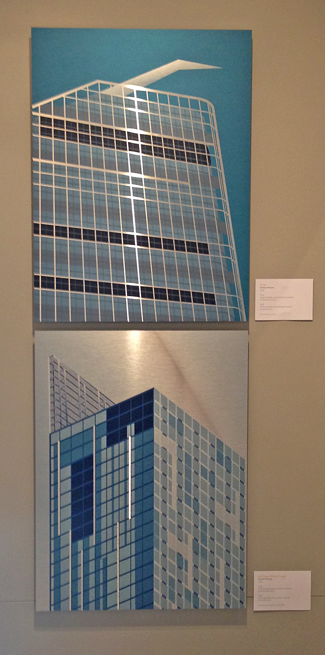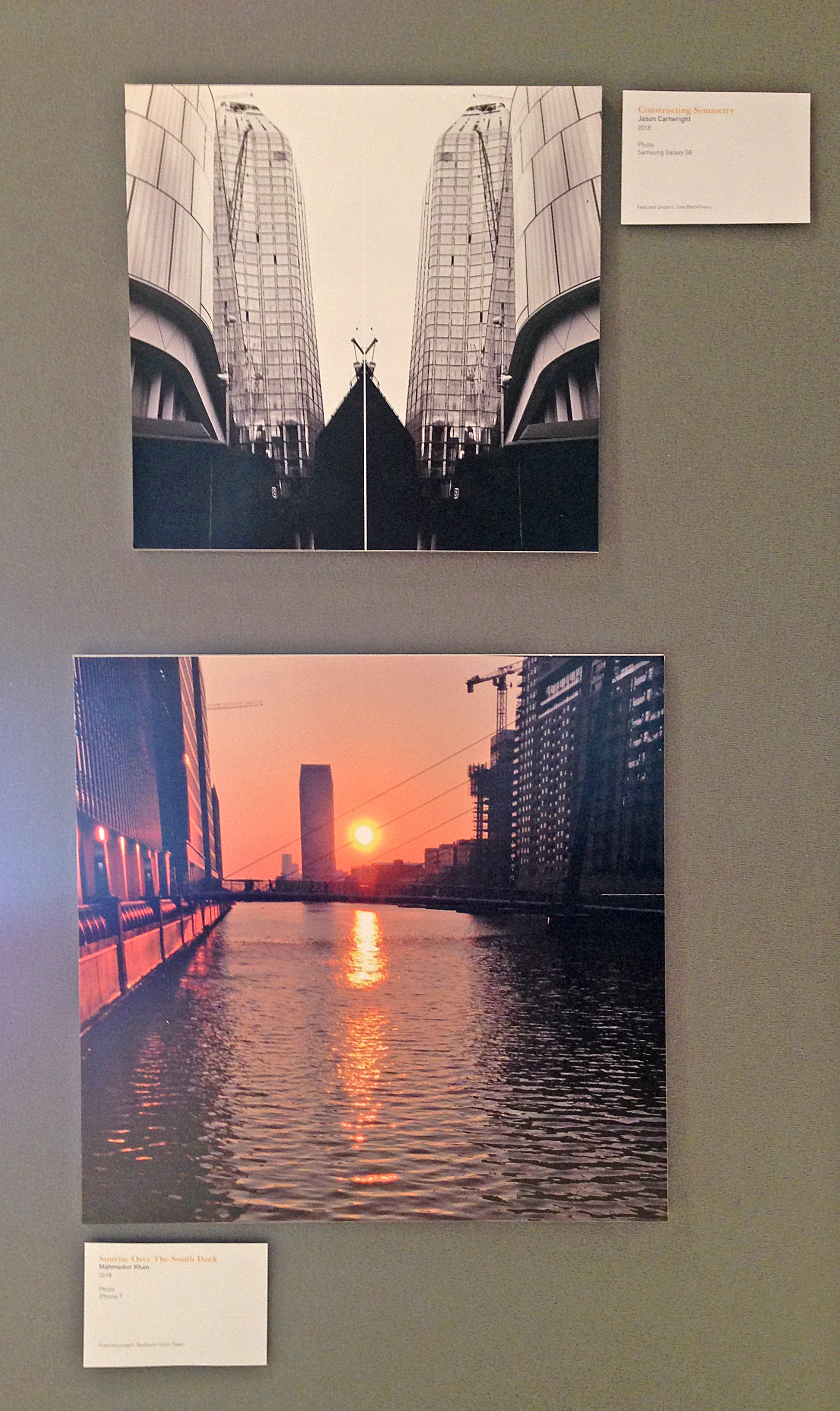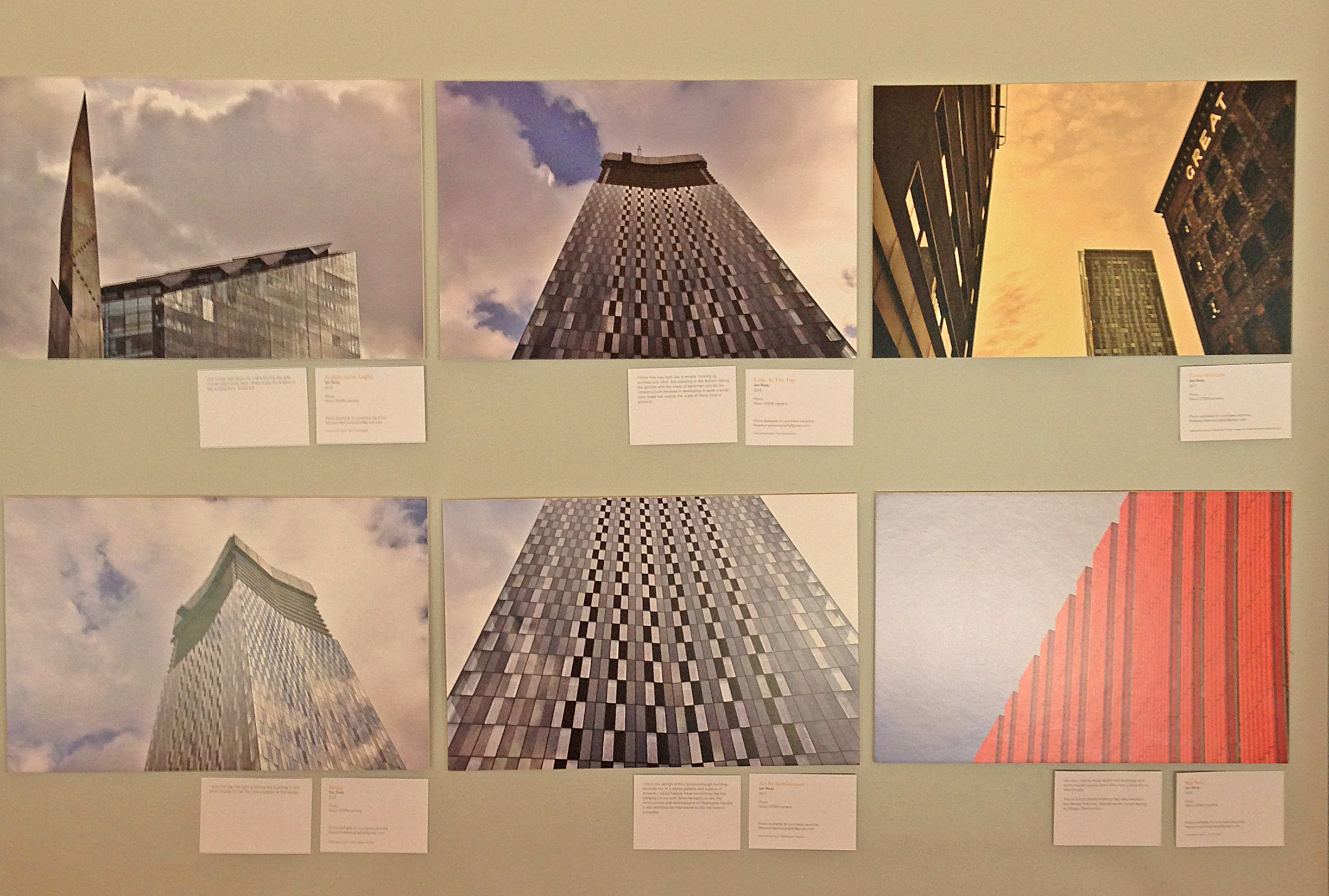 The exhibition also included a competitive element. Our team of judges – SimpsonHaugh’s David MacDonald and Matthew Ayres, and Caro Communication’s Diane Hutchinson – spent an afternoon debating the merits of each piece in order to pick which they thought provided the most surprising, fresh, unconventional and unique view of our building/s. The judges' chosen winner is Katie Anderson’s “RAF Chinook”, a thoughtfully composed photo of One Blackfriars, which they found visually arresting, especially the opposition of the Chinook and the Shard, and the lighting and reflections.
