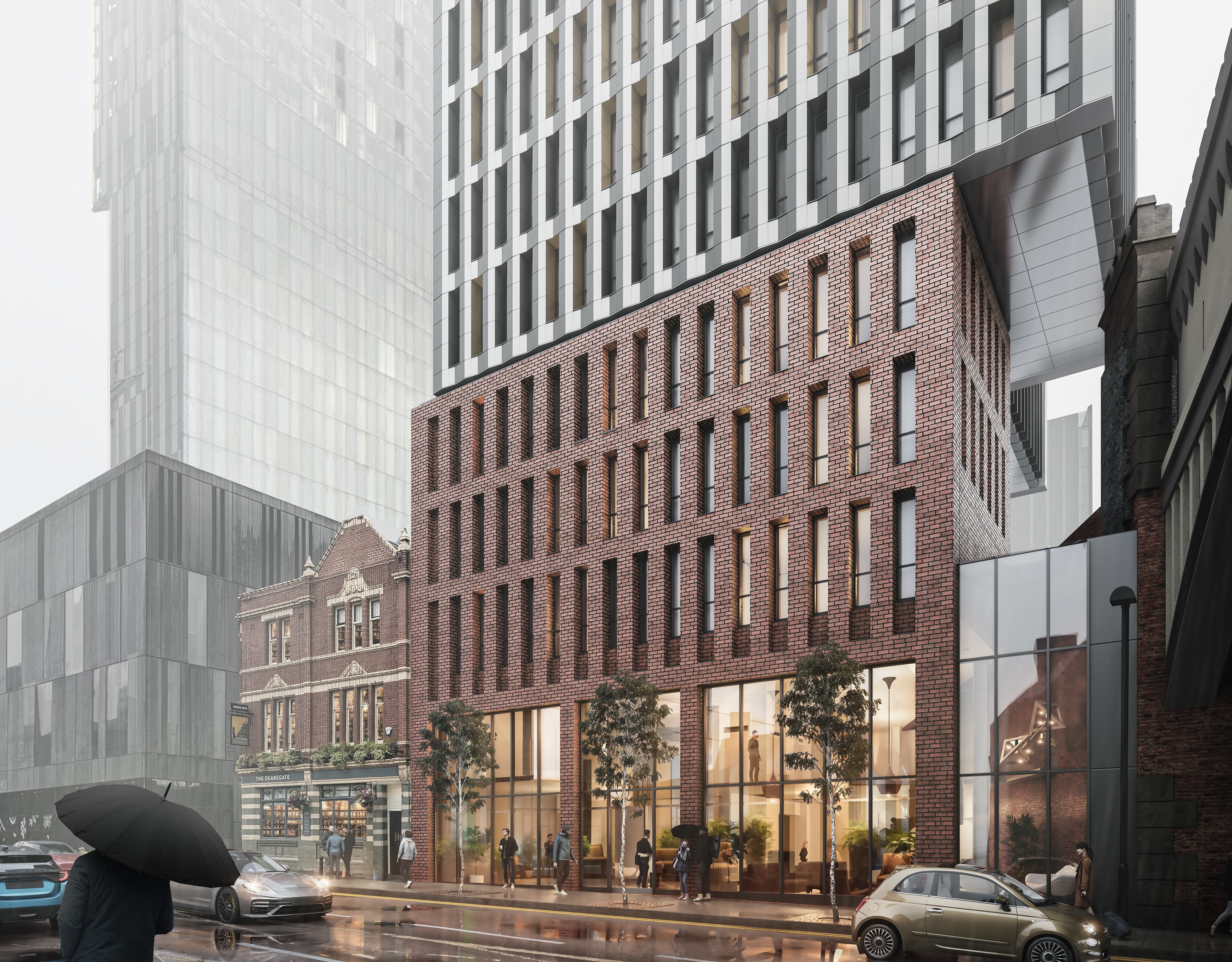 The hotel comprises 358 rooms, as well as other guest facilities, such as guest laundry, an exercise room, storage facilities, and internal and external cycle spaces. The design proposals incorporate a commercial space within the existing arches, and opening onto a new public realm facing Whitworth Street West.