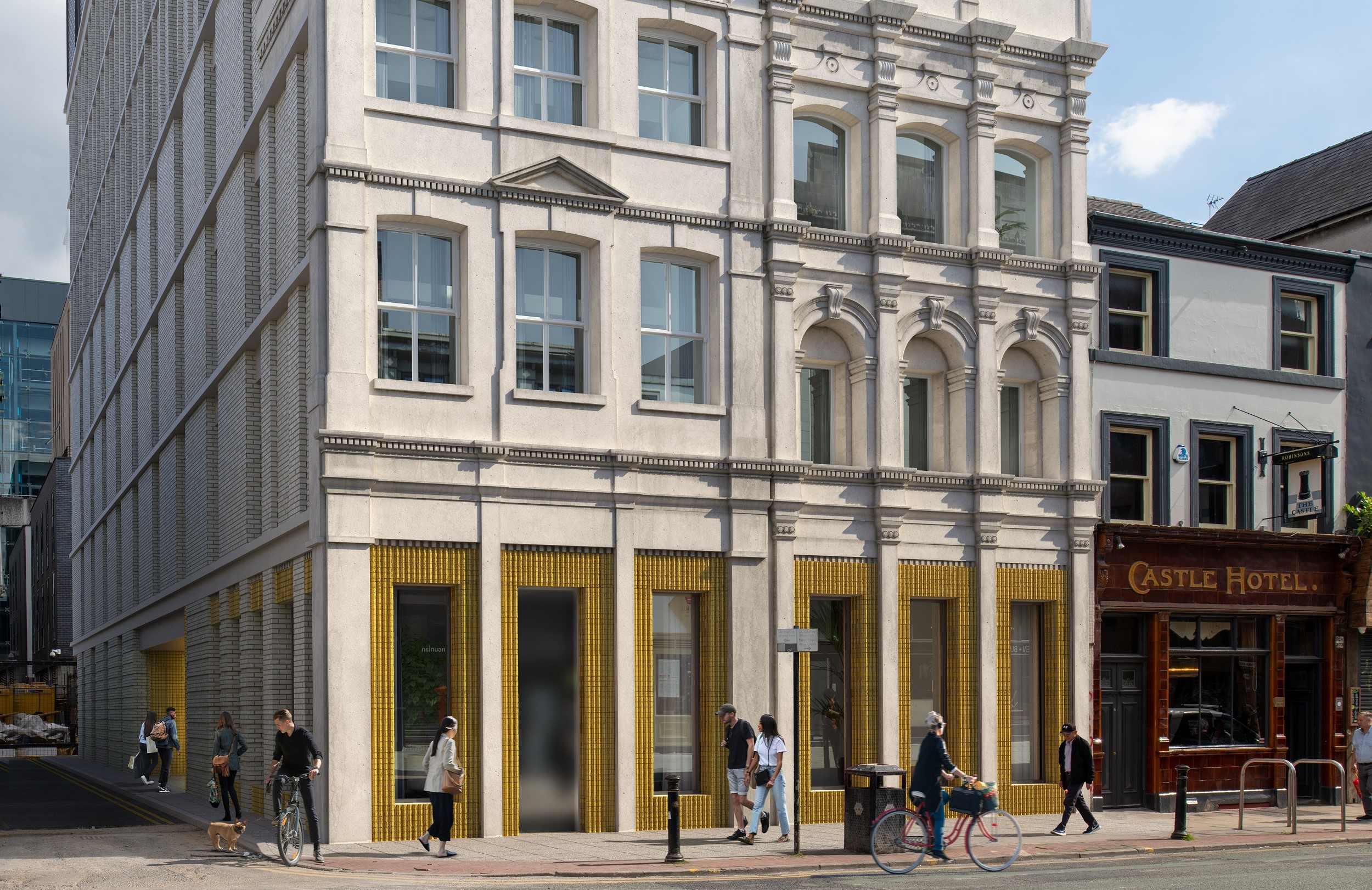The designs for the scheme include the retention and reuse of the existing 68 Oldham Street, partial retention, including the façade, of the existing 70 Oldham Street, conversion of an existing Victorian warehouse building with rooftop extension and a new building of 10 storeys (including ground floor) to create a new 117-bedroom aparthotel and flexible commercial uses.