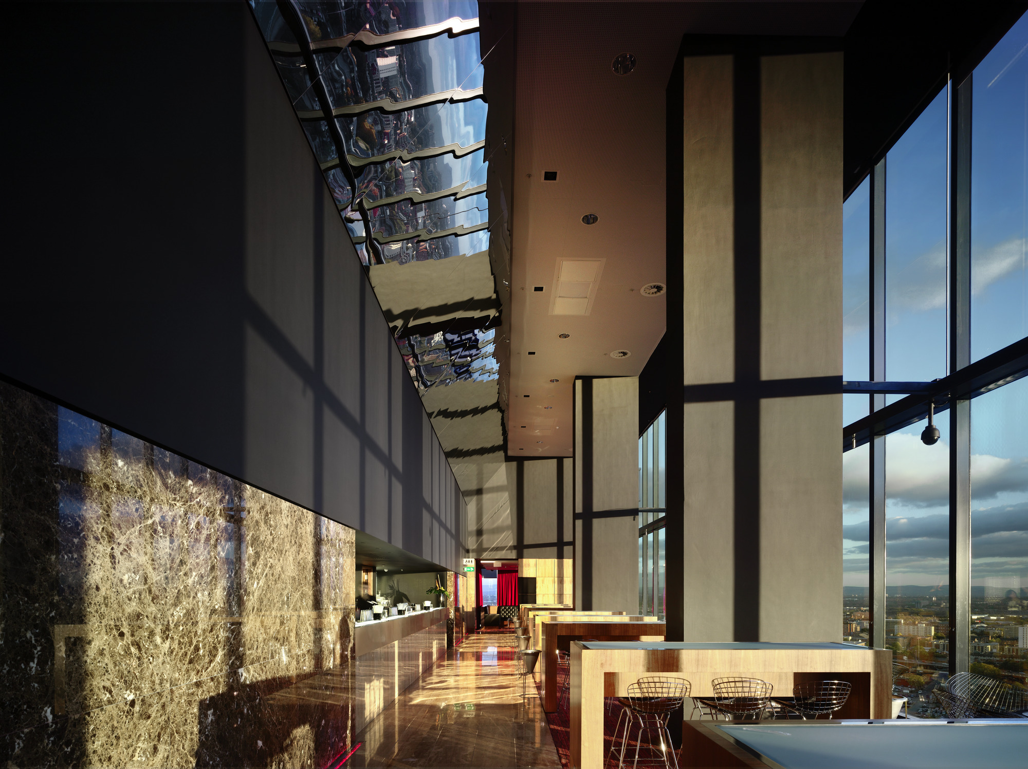 The Tower accommodates 279 hotel guest bedrooms with 219 apartments above, the transition between the two is expressed by a 4m cantilever at level 23. The remainder of the hotel including a ballroom and business centre and a separate commercial building are located at low-level. These components are arranged to create a new public space on the street corner that benefits from the activity of glazed frontages to the foyers, bar and restaurant.