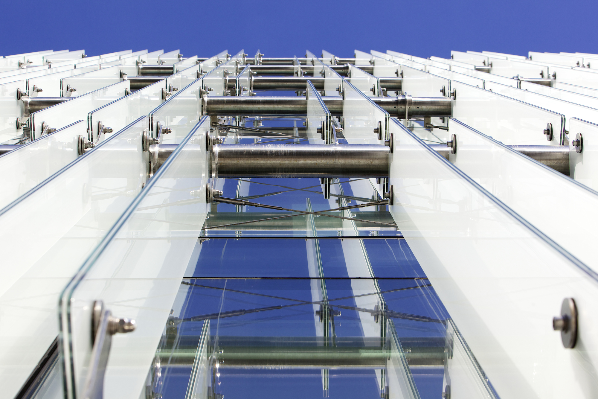 The building form is derived from a number of parameters linked to both the perception of the building from the outside and the inside. The visual impact of the building’s height is considerably less because the top floor is set back. To optimise visual links from inside with the waterfront, the south elevation is conceived as a ‘window’ on the esplanade, distinguished by full-height translucent glass blades that provide solar shading and frame views of the coast. The support system for the blades is a bespoke crafted solution that suits the particular demands of this building and contributes to a striking contemporary image.