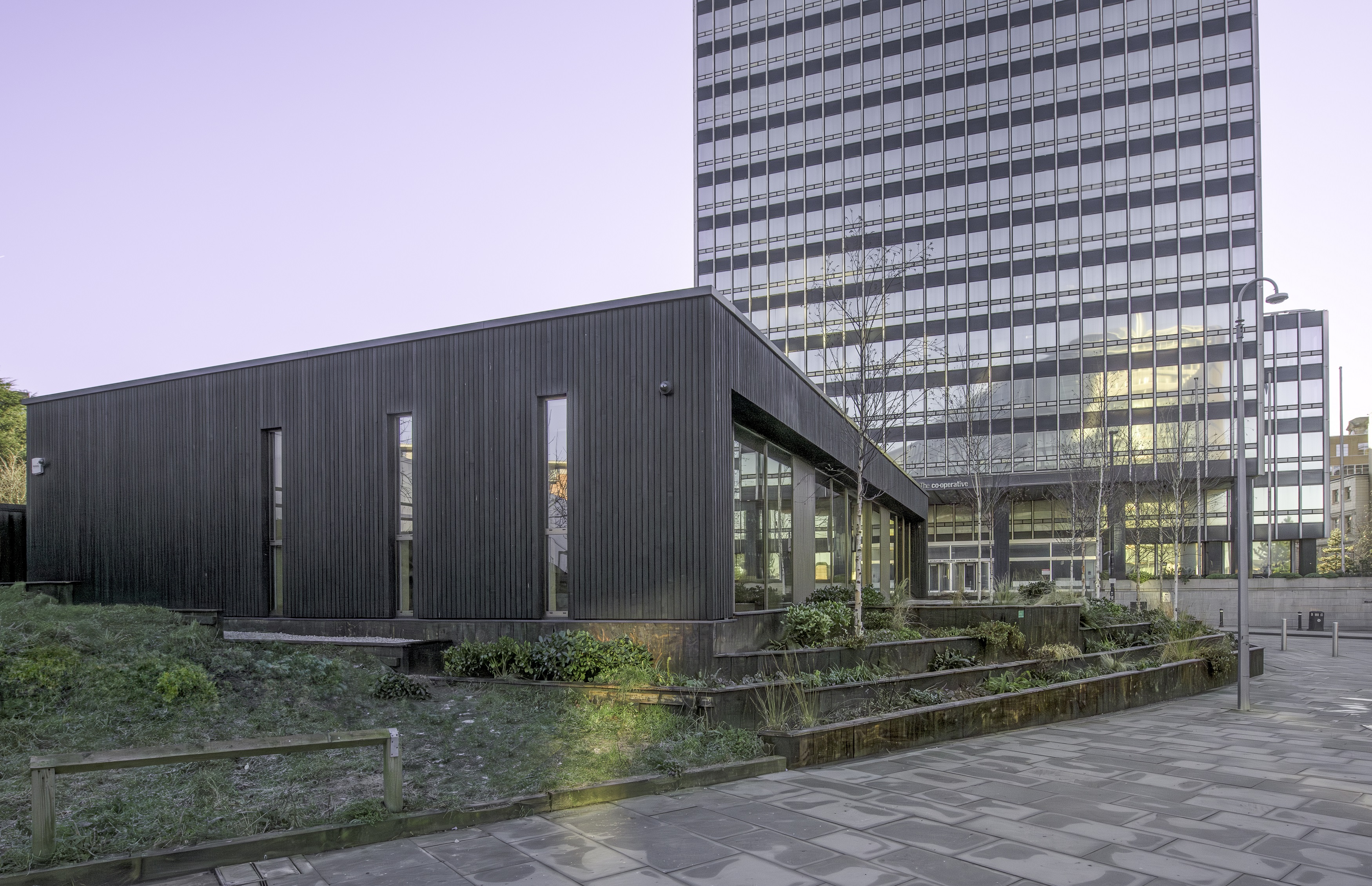 The building is located on the edge of Angel Square, in the heart of the NOMA neighbourhood. The Angel Square fronting elevation is fully glazed, which provides a visual link to the landscaped Angel Square as well as allowing natural light to fill the interior spaces. This glazed façade opens out on an external break-out terrace which front Angel Square, and a series of tiered planting beds carefully deal with the level change across the site in an attractive and unique way.