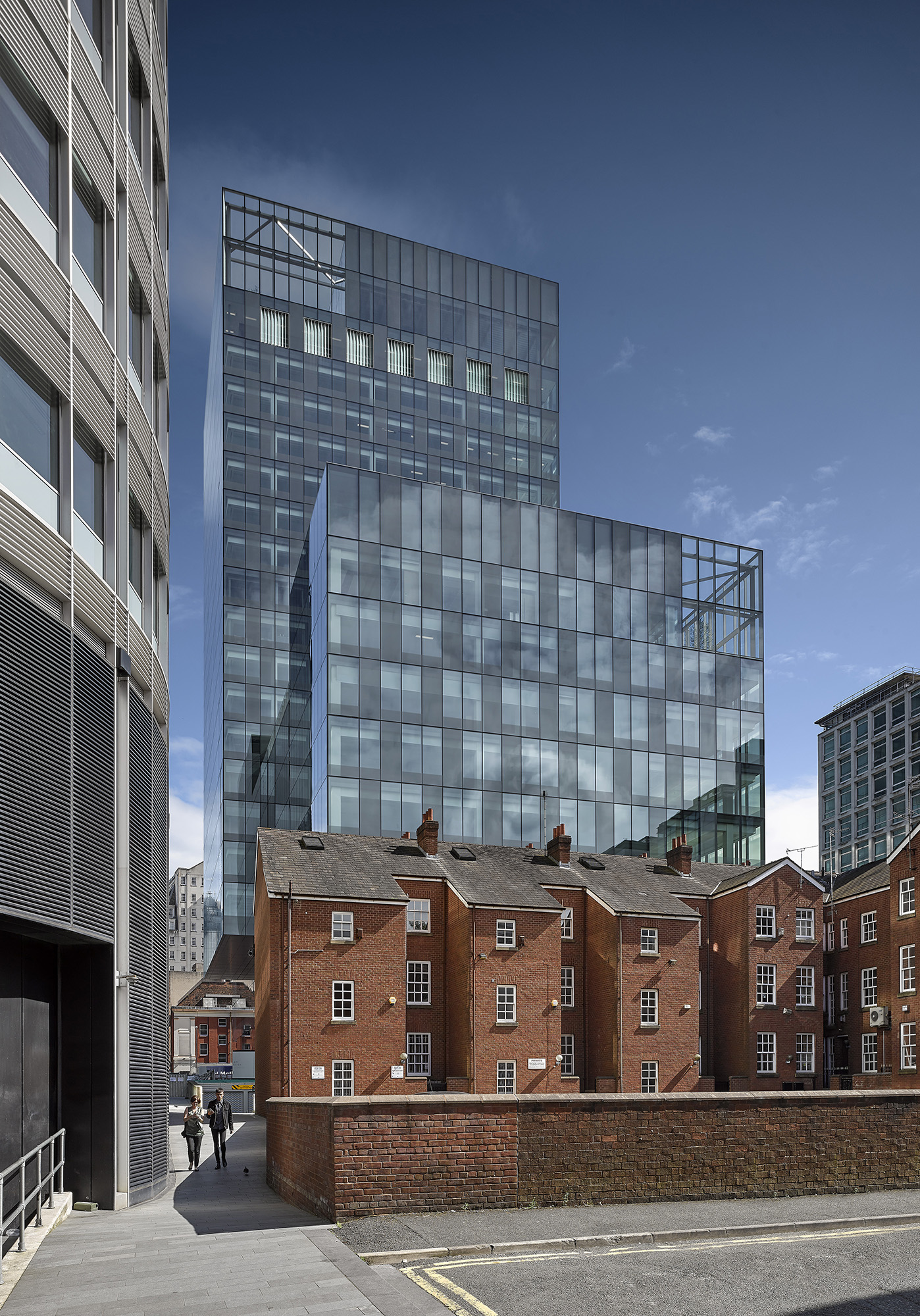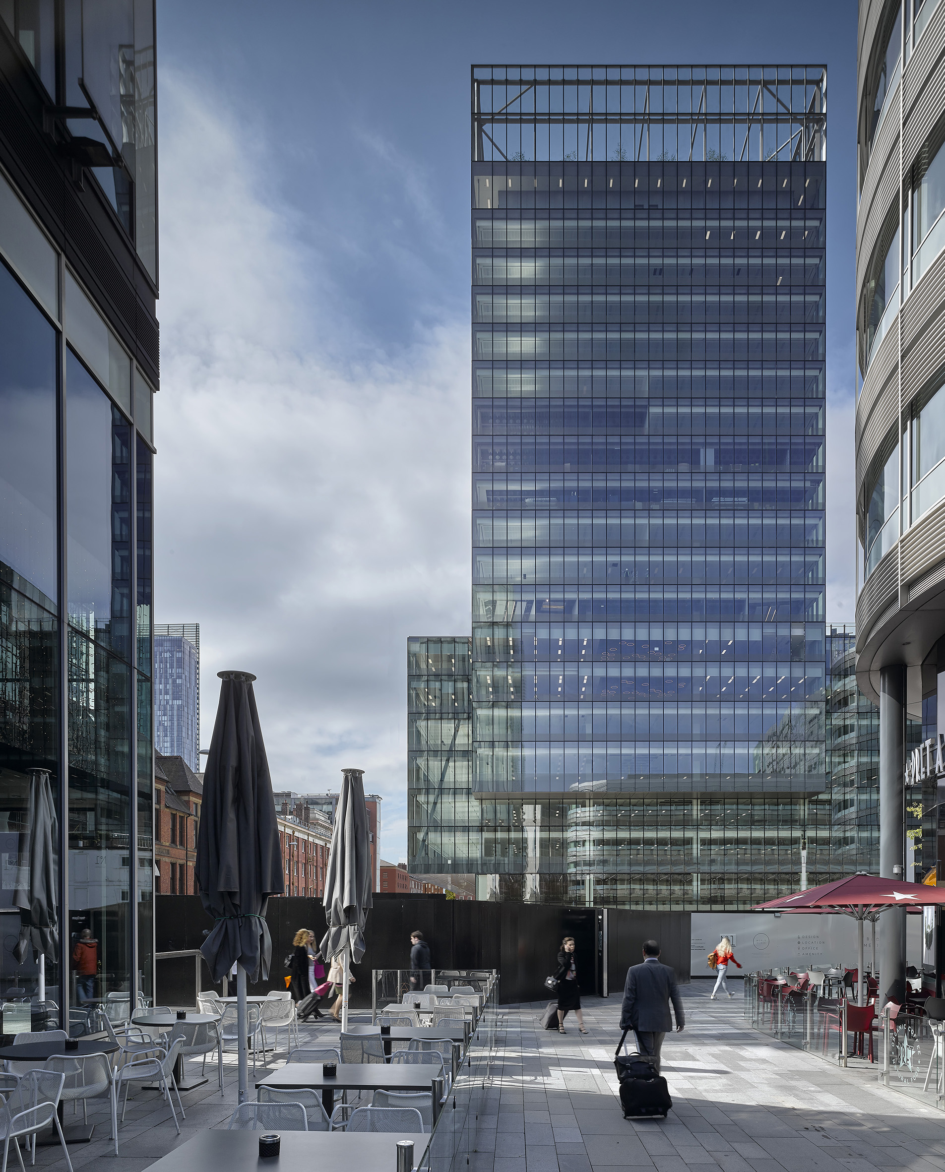 Our brief was for a sustainable landmark office building with spacious and flexible floorplates to mark the success and culmination of the Spinningfields Masterplan, Manchester’s thriving office-led, mixed-use district.