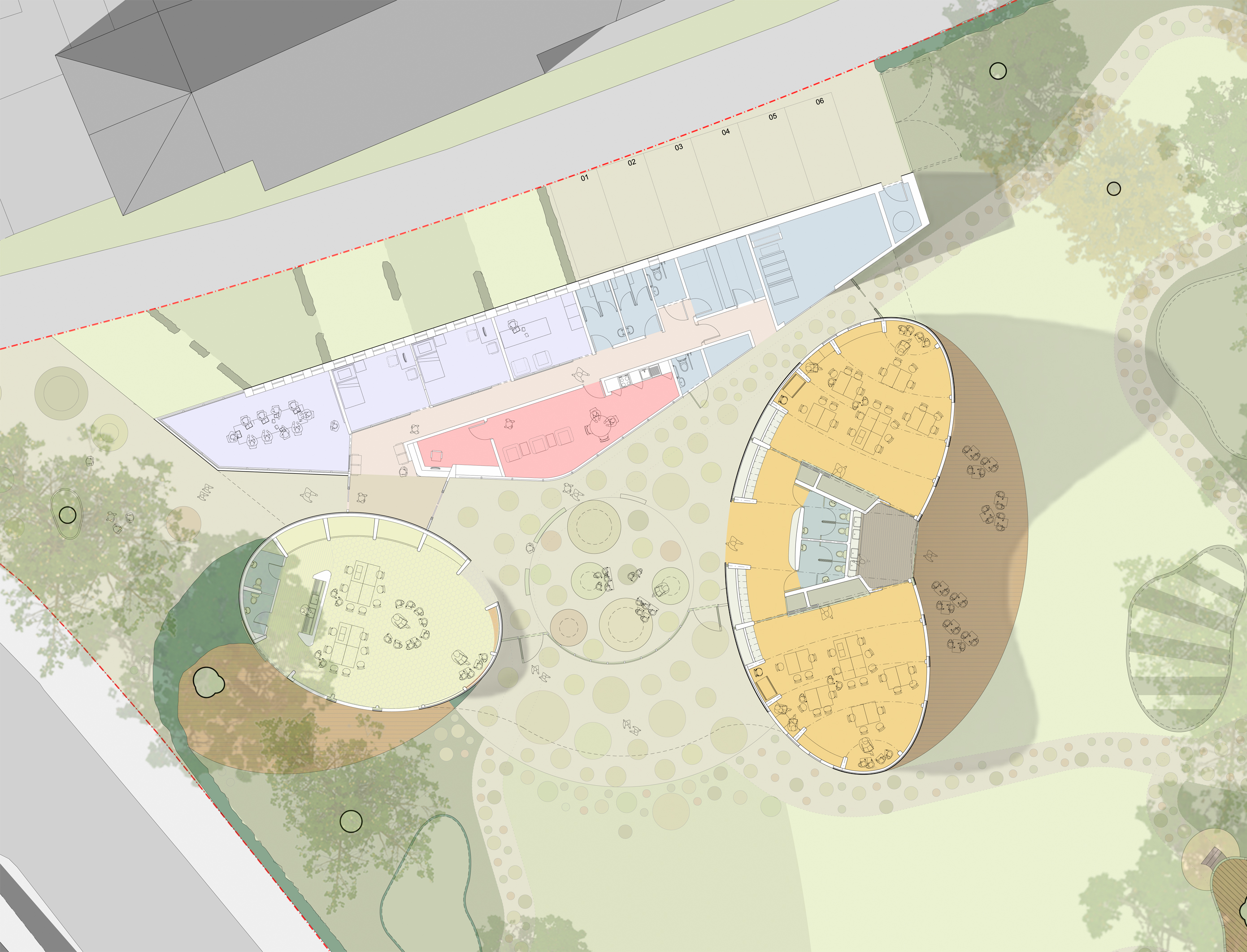 areas and they are linked with each other and an administrative building, by a
