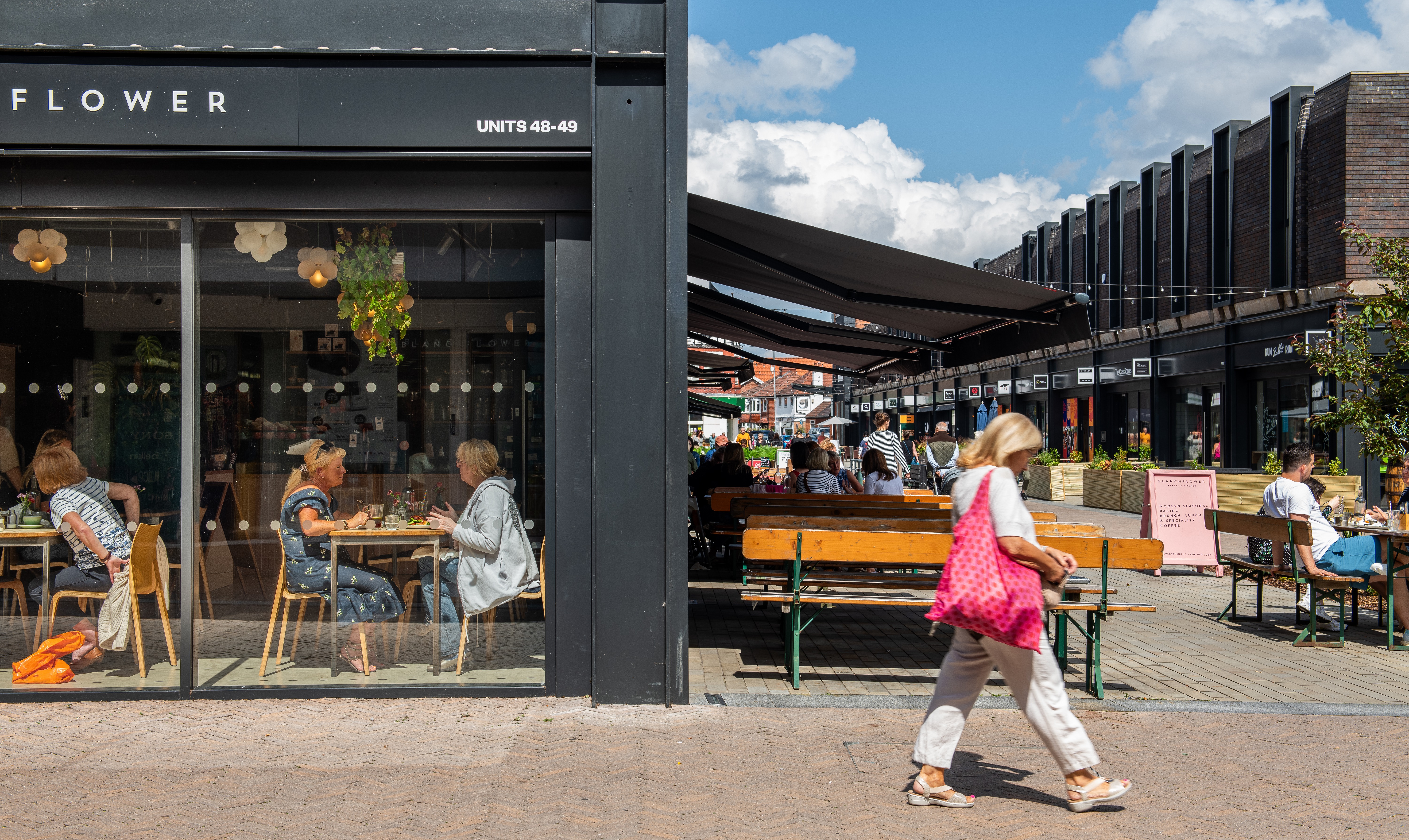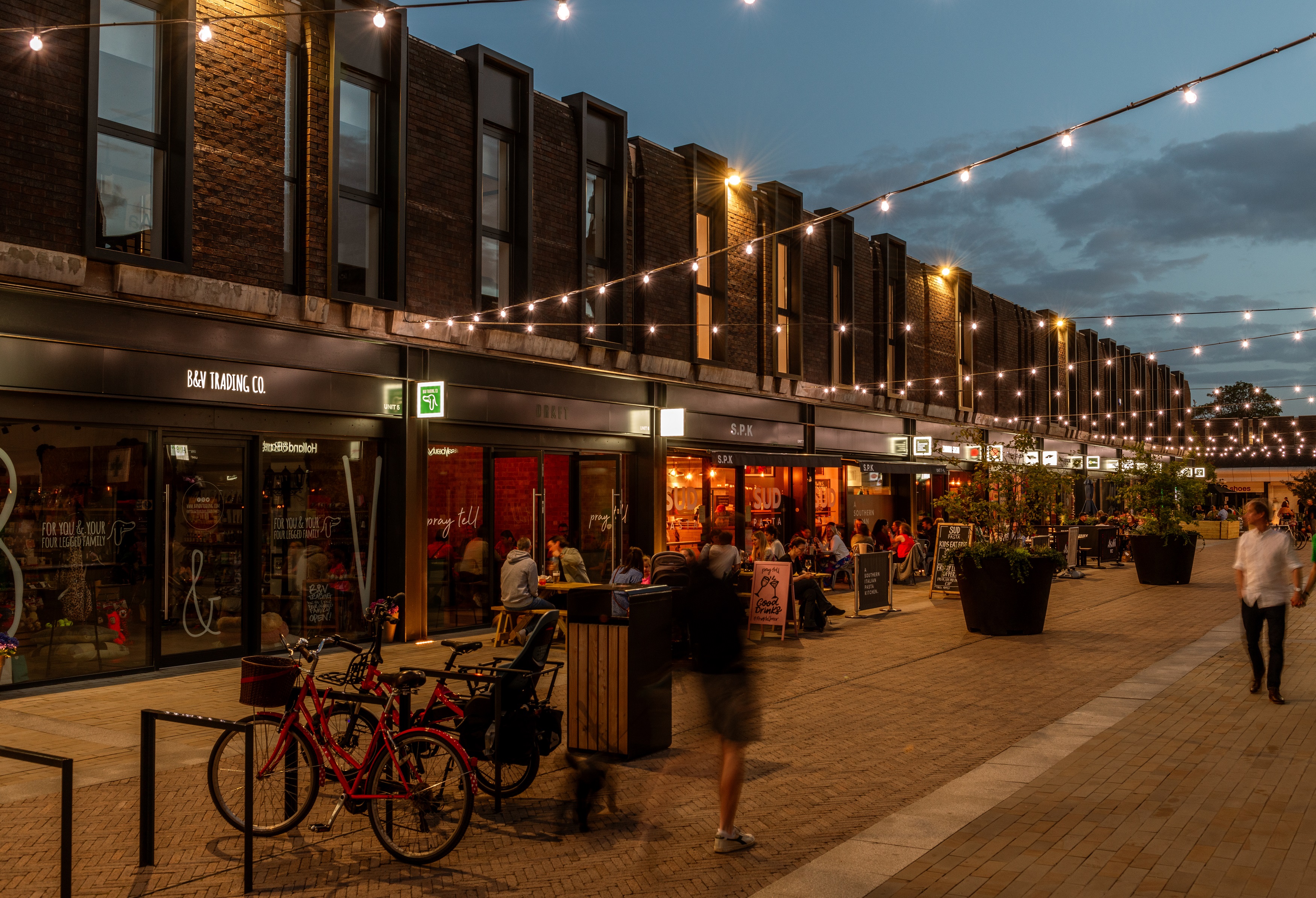 Significant improvements were also made to the appearance and quality of the public realm. The introduction of tree planting and planting beds was used to soften the visual aesthetic of the space, and a reconfigured flexible Town Square space encourages increased dwell time. Cafes and restaurants now spill out into the public realm and the central square provides space for a variety of pop-up activities and events.