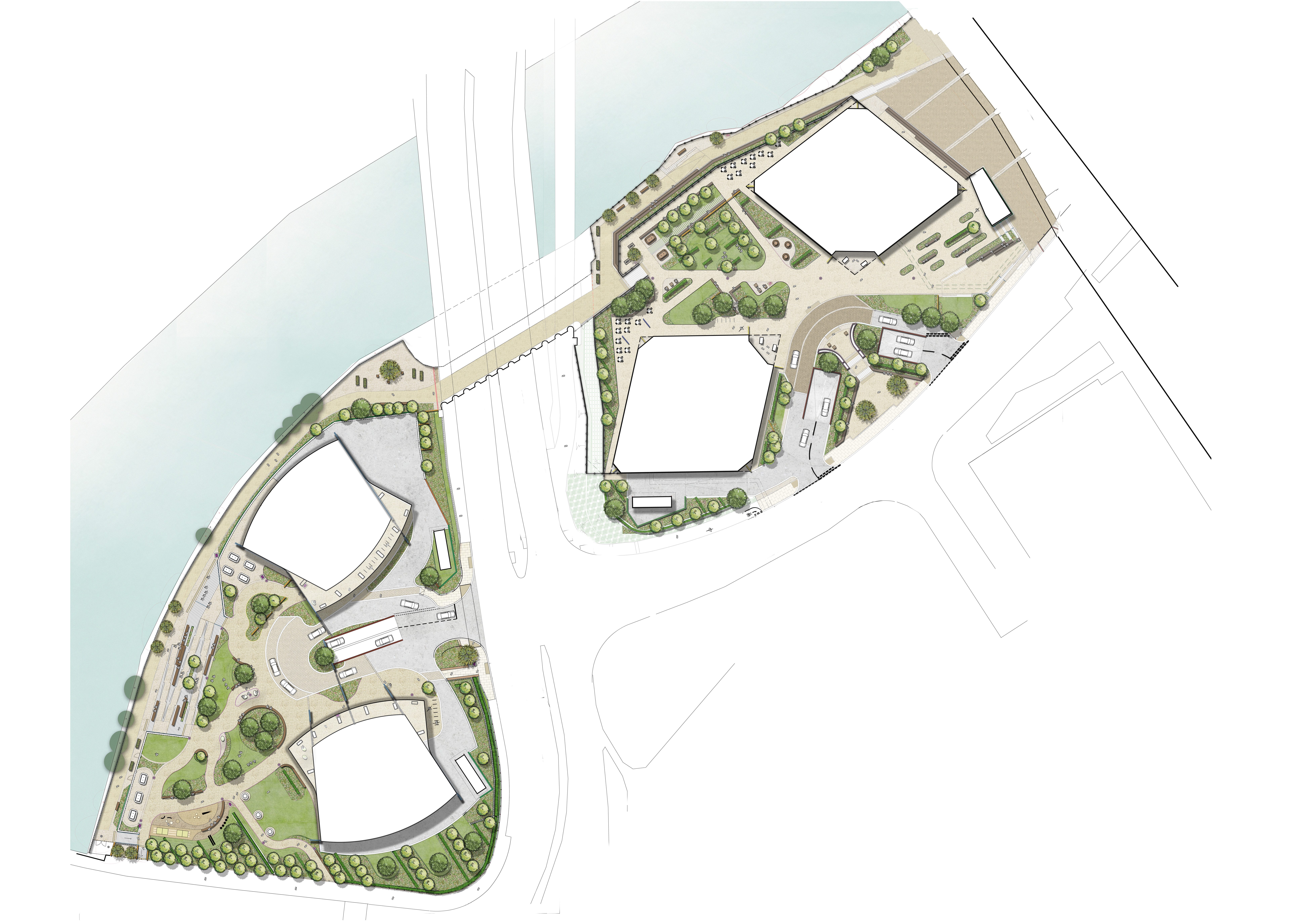 The majority of each site is given over to the creation of a new public realm, providing the opportunity to establish a stronger connection into St Johns whilst increasing public amenity and biodiversity along the river. The designs include a mixture of retail and leisure uses within the ground floors to create active frontages that will bring new activity and vibrancy into the area.