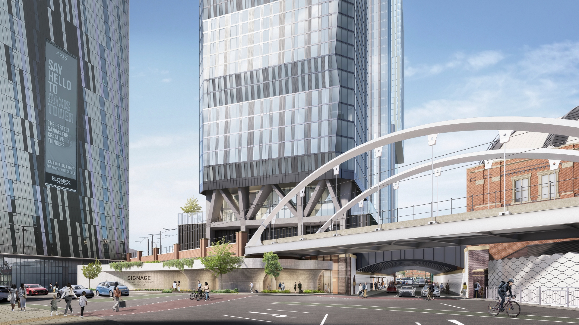 Positioned either side of the existing Viadux Phase 1 building, the two new towers contribute to a vibrant and diverse urban offering. The scheme is set to deliver a bold mix of luxury hospitality, high-quality residences, and affordable homes within a core city centre location, delivering a critical mass of high-quality uses and supporting the ongoing economic growth of Manchester.