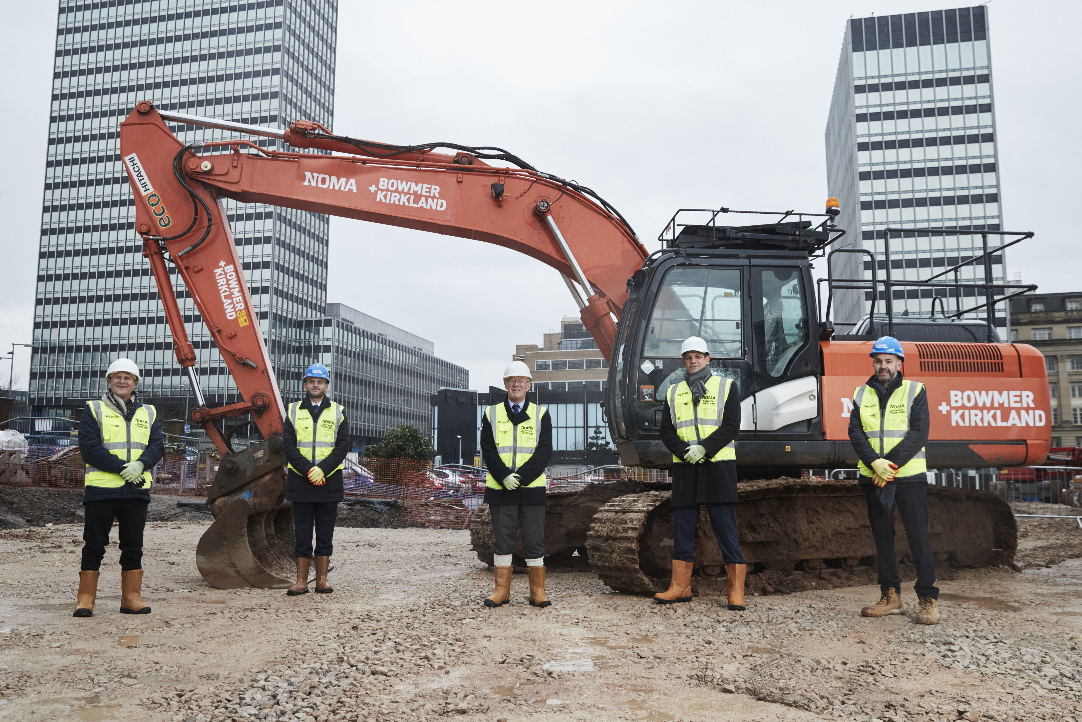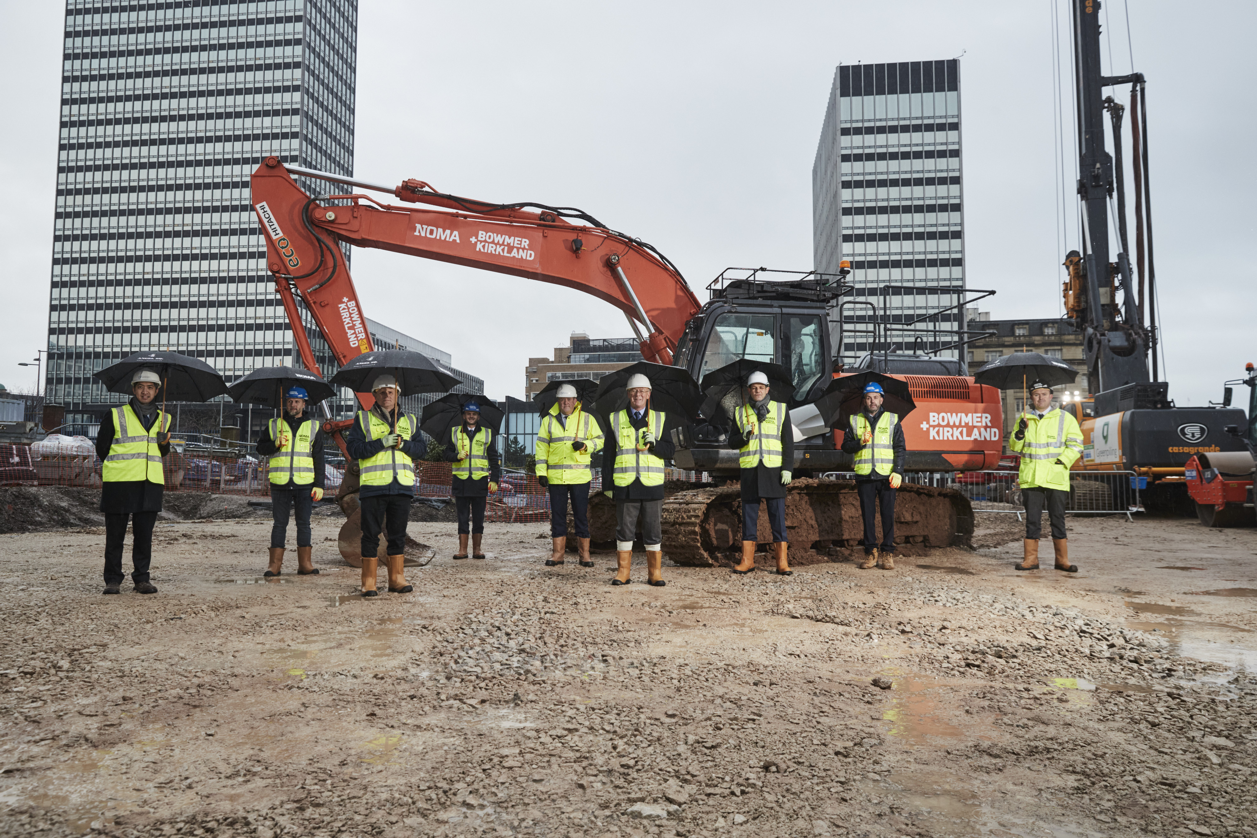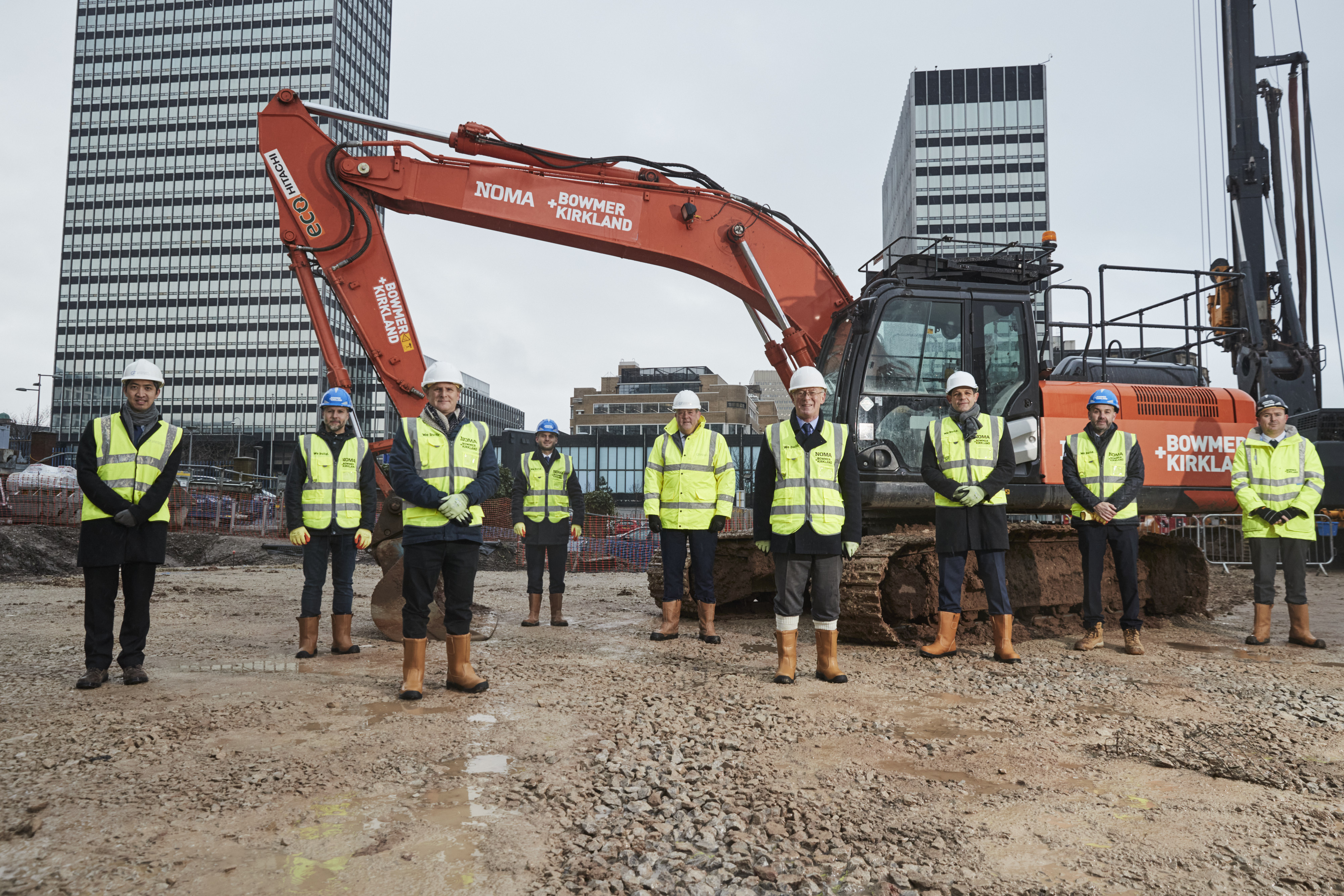 Last month we joined representatives from investment manager for NOMA Federated Hermes, development manager MEPC, main contractor Bowmer + Kirkland (B+K) and Manchester City Council to celebrate 4 Angel Square’s official start on site with a socially distanced ground-breaking ceremony.