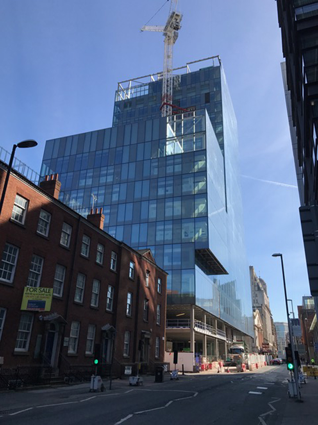 The use of photography and video to record a building’s evolution is quite conventional, but we thought that a series of paintings interpreting the two year transformation may not have been done before. Throughout the commission, Colin captured the changes he witnessed in and around the Spinningfields area from the street, vantage points and on site. The exhibition also includes sketches Colin carried out whilst flying at 1000 feet in a helicopter over the city.