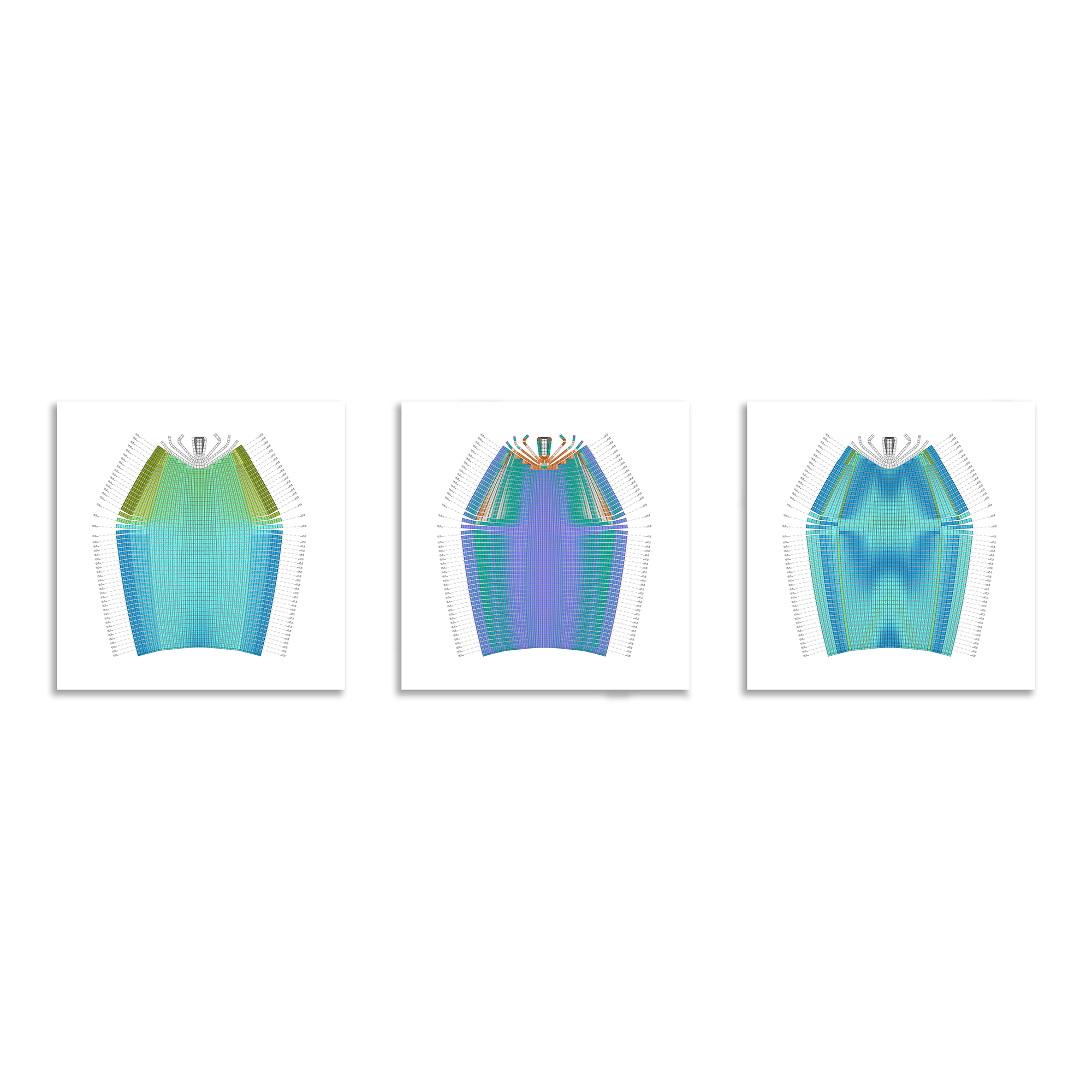 Created by Andy McConachie and David Ferment, the artwork was originally designed as one panel featuring a sequence of five façade construction drawings. After making it through the first stage selection, we were asked if we might make the artwork ‘less architectural’ when submitting it for the second stage selection. After a rigorous refining process, we decided to consider the drawings purely for their graphic strength. The three strongest images where chosen and hung together, creating a balanced, horizontal and colourful composition.