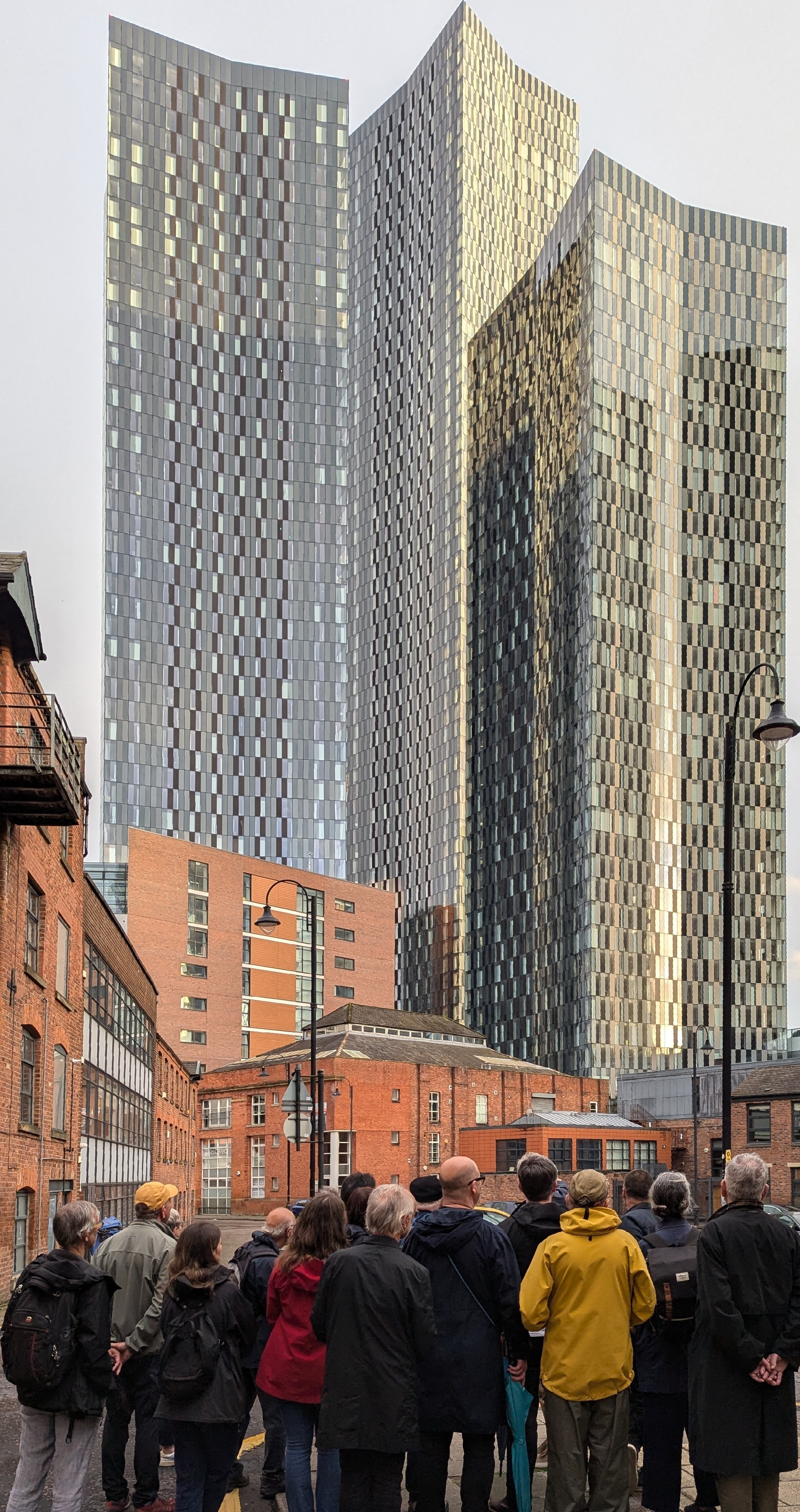Starting at the pioneering 4 Angel Square at the heart of the NOMA neighbourhood, the architectural walk took the group to a number of SimpsonHaugh's masterplanning and built projects. We described our work on the Millennium Masterplan and the projects - Shudehill Transport Interchange, Urbis, and No. 1 Deansgate - that were delivered in the wake of the 1996 IRA bomb. We visited key milestones in the work of the practice such as No. 1 Spinningfields, Beetham Hilton tower and Viadux and detoured through Knott Mill to visit some of SimpsonHaugh's early work on the transformation of some of Manchester's 19th and early 20th century built heritage into offices, apartments, a recording studio and Atlas Bar. Finally, we talked about masterplanning the New Jackson area, and took a look at Deansgate Square and the new primary school and residential towers at Crown Street.