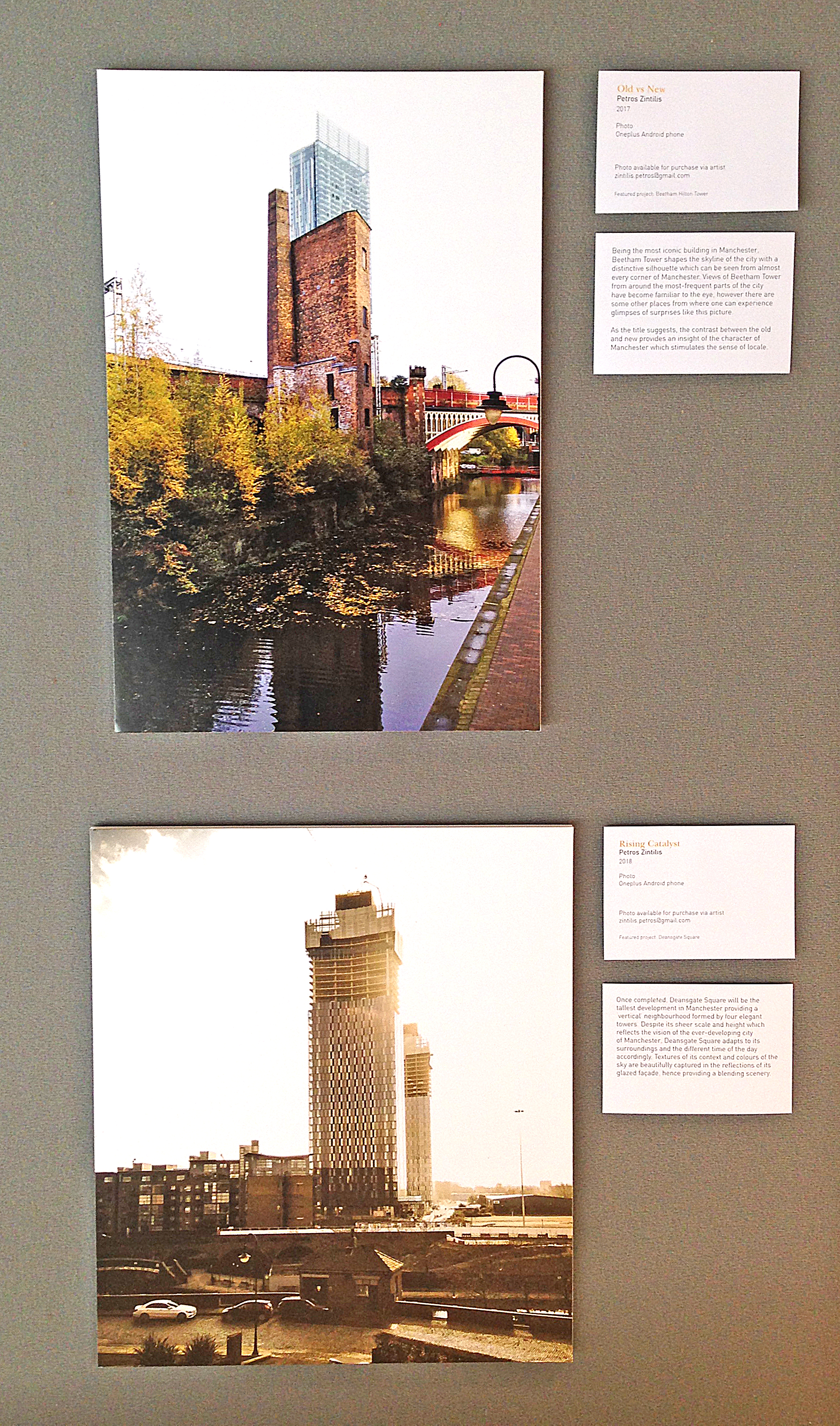- "Shaping Manchester" by Steffan Morris-Fernandez, a playful and exuberant take on the way in which SimpsonHaugh’s iconic Beetham Hilton Tower provides a constant backdrop to the myriad daily activities in the city;