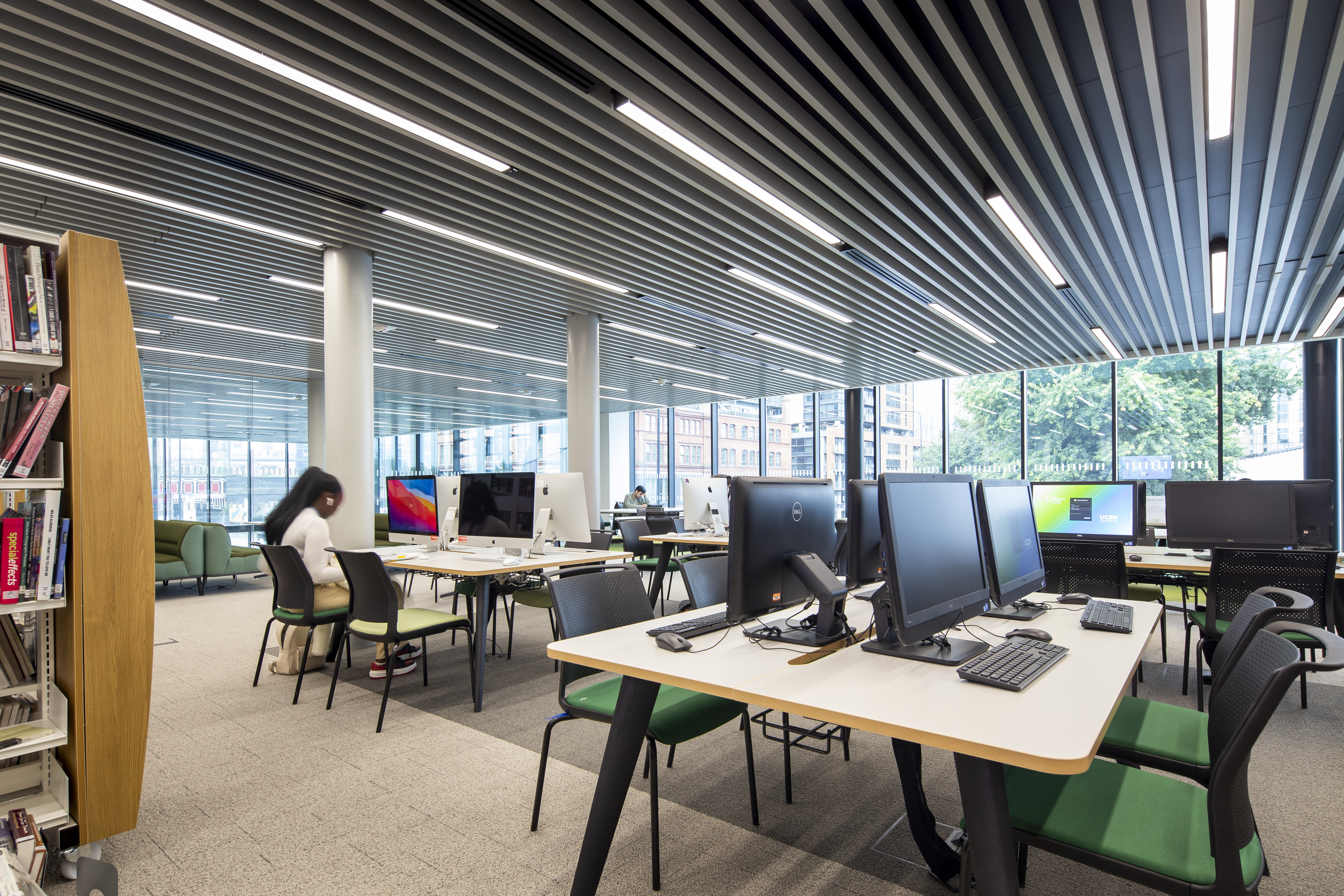Designed as a collaboration between SimpsonHaugh and Bond Bryan, the new City Campus combines Higher and Further Education on a single site and is the flagship of the College’s new vision. Open to students since September 2022, this phenomenal facility provides students with a vibrant environment that facilitates learning and socialising.