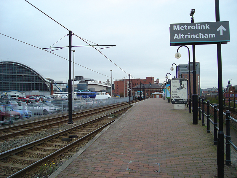 Deansgate-Castlefield Metrolink Stop: The footbridge connecting to the rail station was enclosed, dirty and intimidating