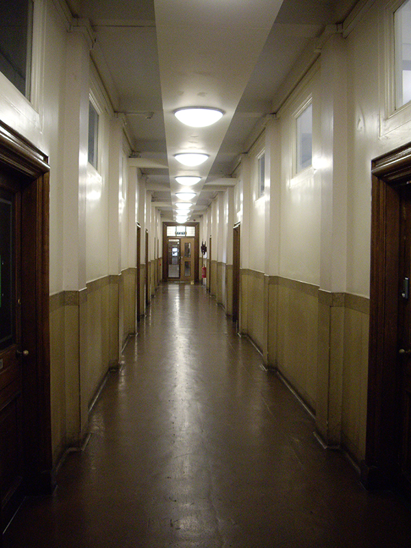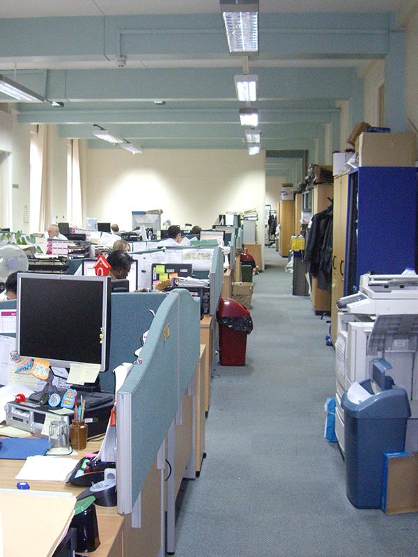 Town Hall Extension: Typical corridors before, encouraged silo working and offered little opportunity for staff to interact with each other