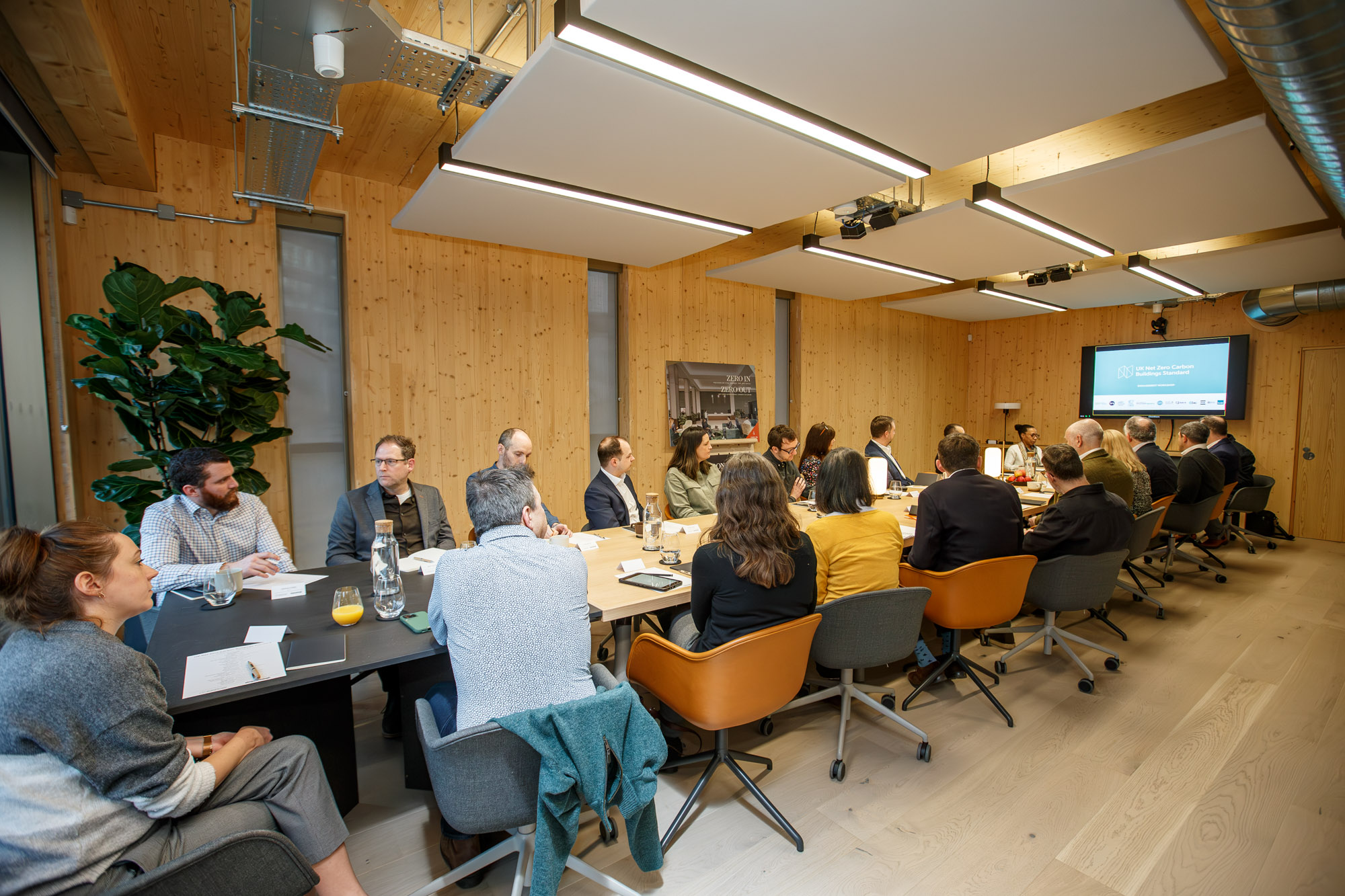 On Thursday 1st February 2024, we were pleased to host a Roundtable Breakfast event on behalf of the UK Net Zero Carbon Buildings Standard at the SimpsonHaugh-designed NOMA Pavilion in Manchester.